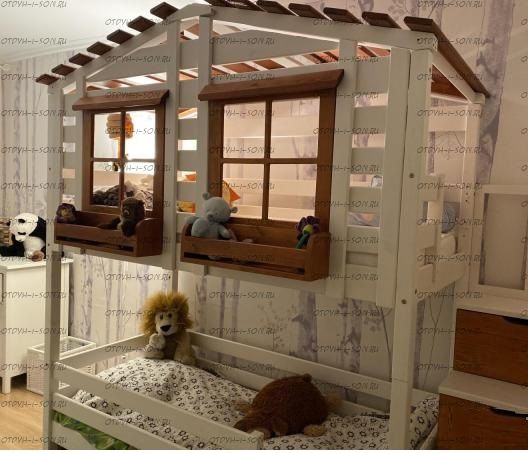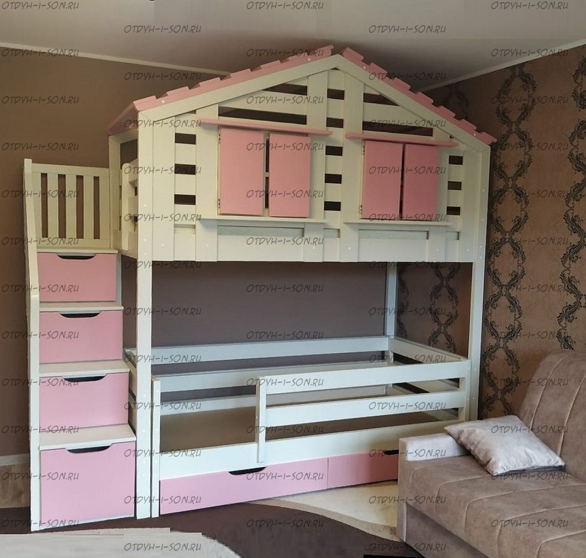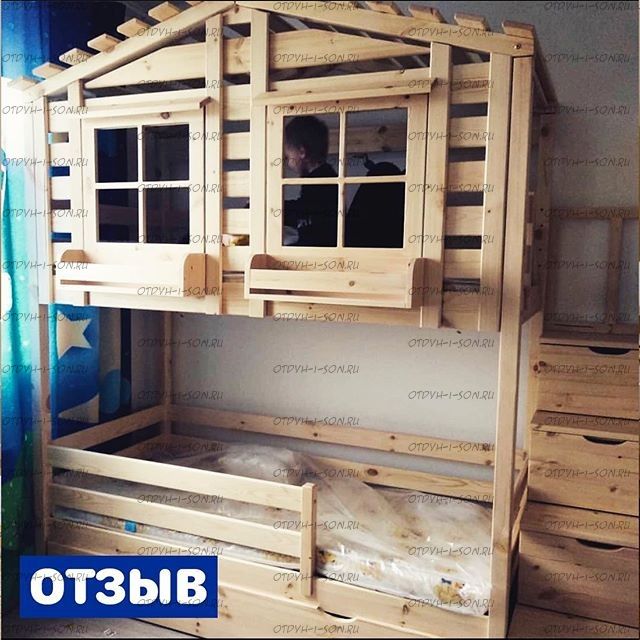 Кровать двухъярусная Домик Roof №40А может быть изготовлена как трехъярусная кровать. Характеристики: Размер спального места верхнего яруса: 70х180, 80х180 см, 80х190 см, 90х190 см., 90х200 см. (и любые другие на Ваш вкус) Размер спального места нижнего яруса: 80х190, 80х200, 90х190, 90х200, 120х190, 120х200, 130х200, 140х190 см. (и любые другие на Ваш вкус) Внешние размеры: Материал: сосна Возможны любые нестандартные размеры Вес кровати: Объем кровати: Цвет: Возможность трансформации в отдельно стоящие кровать чердак и двуспальную кровать; - без матрасов; опорный брус спинок(ножки) - 40х80мм. Внимание: для любой модели кровати возможно увеличение высоты бортиков кровати! Возможно изготовление кровати нестандартных размеров по вашим замерам, доплата за нестандартный размер: - за кровать + 10% от стоимости изделия; Производство Владимирской мебельной фабрики, кровать доставляется напрямую от производителя, самовывоз ограничен.