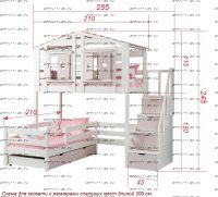 | Высота изделия | 240-260 см. (возможно изменение высоты кровати). При заказе необходимо измерить высоту потолка помещения, где будет стоять кровать и письменно сообщить менеджеру. |