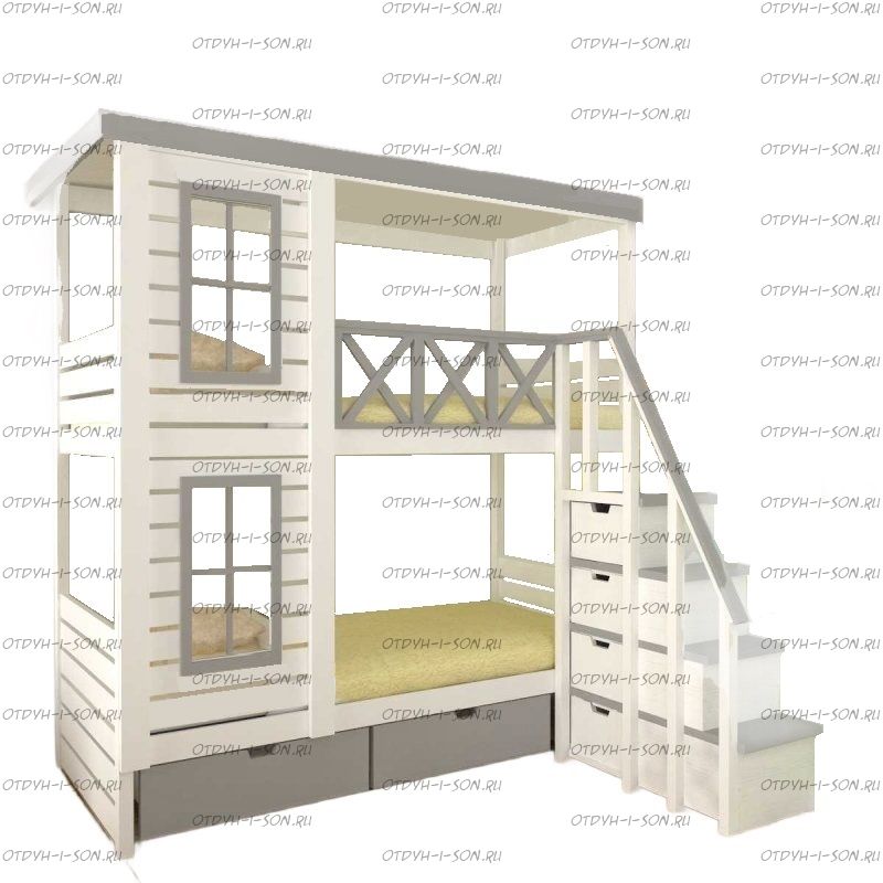 Кровать двухъярусная Домик Santana №4 может быть изготовлена как трехъярусная кровать. Характеристики: Размер спального места верхнего яруса: 70х180, 80х180 см, 80х190 см, 90х190 см., 90х200 см. (и любые другие на Ваш вкус) Размер спального места нижнего яруса: 80х190, 80х200, 90х190, 90х200, 120х190, 120х200, 130х200, 140х190 см. (и любые другие на Ваш вкус) Внешние размеры: Материал: сосна Возможны любые нестандартные размеры Вес кровати: Объем кровати: Цвет: Возможность трансформации в отдельно стоящие кровать чердак и двуспальную кровать; - без матрасов; опорный брус спинок(ножки) - 40х80мм. Внимание: для любой модели кровати возможно увеличение высоты бортиков кровати! Возможно изготовление кровати нестандартных размеров по вашим замерам, доплата за нестандартный размер: - за кровать + 10% от стоимости изделия; Производство Владимирской мебельной фабрики, кровать доставляется напрямую от производителя, самовывоз ограничен.