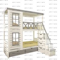Кровать двухъярусная Домик Santana №4 может быть изготовлена как трехъярусная кровать.