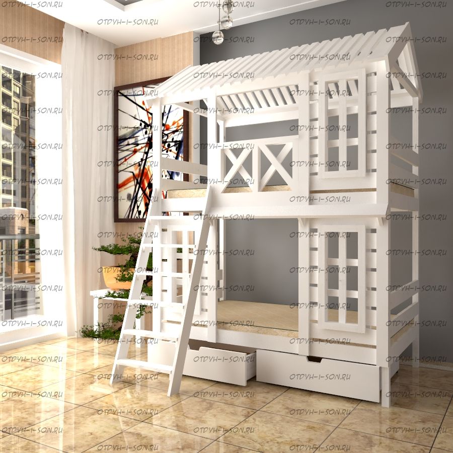 Кровать двухъярусная Домик Felicia №2 может быть изготовлена как трехъярусная кровать. Характеристики: Размер спального места верхнего яруса: 70х180, 80х180 см, 80х190 см, 90х190 см., 90х200 см. (и любые другие на Ваш вкус) Размер спального места нижнего яруса: 80х190, 80х200, 90х190, 90х200, 120х190, 120х200, 130х200, 140х190 см. (и любые другие на Ваш вкус) Внешние размеры: высота с подкроватными ящиками - желательно 230-260 см. Материал: сосна Возможны любые нестандартные размеры Вес кровати: Объем кровати: Цвет: Возможность трансформации в отдельно стоящие кровать чердак и двуспальную кровать; - без матрасов; опорный брус спинок(ножки) - 40х80мм. Внимание: для любой модели кровати возможно увеличение высоты бортиков кровати! Возможно изготовление кровати нестандартных размеров по вашим замерам, доплата за нестандартный размер: - за кровать + 10% от стоимости изделия; Производство Владимирской мебельной фабрики, кровать доставляется напрямую от производителя, самовывоз ограничен.