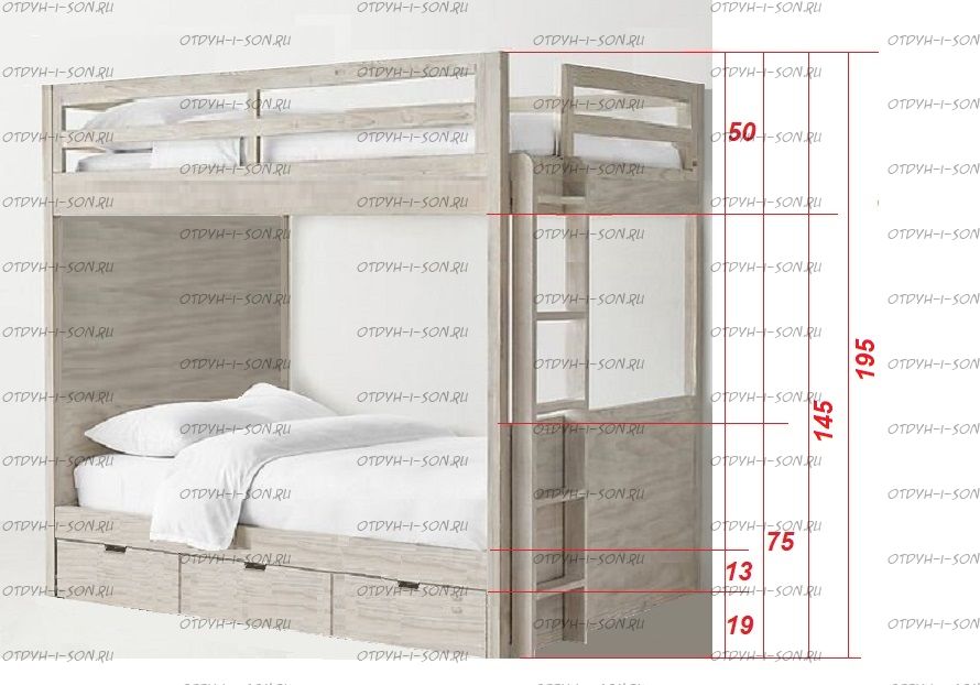 Кровать двухъярусная Кадет №20 Характеристики: Размер спального места: 70х190 см, 70х200 см, 80х190 см, 80х200 см, 90х190 см, 90х200 см Материал: сосна Возможны нестандартные размеры Цвет (морилка): беленый дуб, средний орех, сосна (натуральный), венге, светлый орех, ольха, орех, бук, красное дерево, клен красный, груша Цвет (эмаль) (+20 % от стоимости): фисташковый, белый, черный, темно-зеленый, слоновая кость (белый в бежевый), сиреневый, синий, светло-зеленый, розовый, красный, желтый, дуб молочный (белый в розовый), голубой Комплектация: Кровать двухъярусная Кадет Лестница, которая выполняется с любой стороны кровати по Вашему запросу. Расположение лестницы кровати не универсально и указывается. Матрас докупается отдельно Внимание: для любой модели кровати возможно увеличение высоты бортиков кровати! Возможно изготовление кровати нестандартных размеров по вашим замерам, доплата за нестандартный размер: - за кровать + 10% от стоимости изделия; Производство Владимирской мебельной фабрики, кровать доставляется напрямую от производителя, самовывоз ограничен.