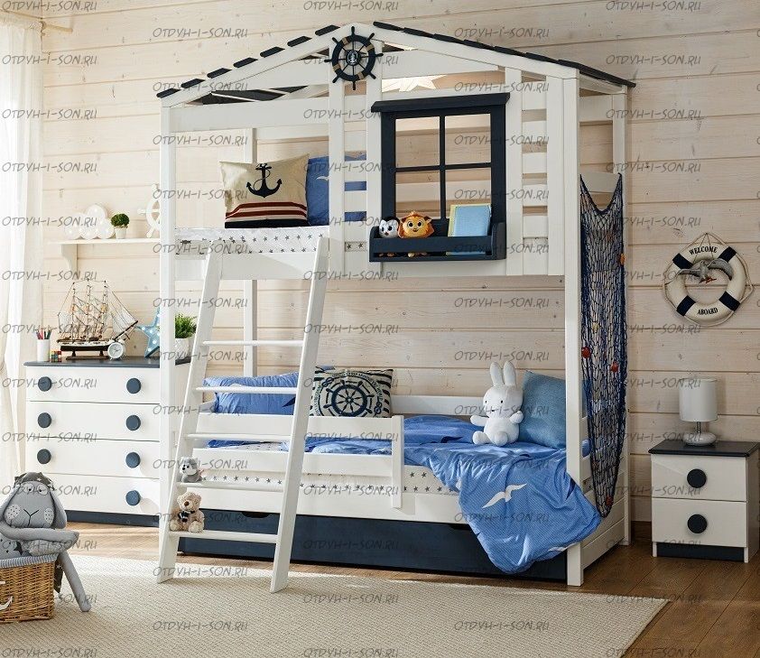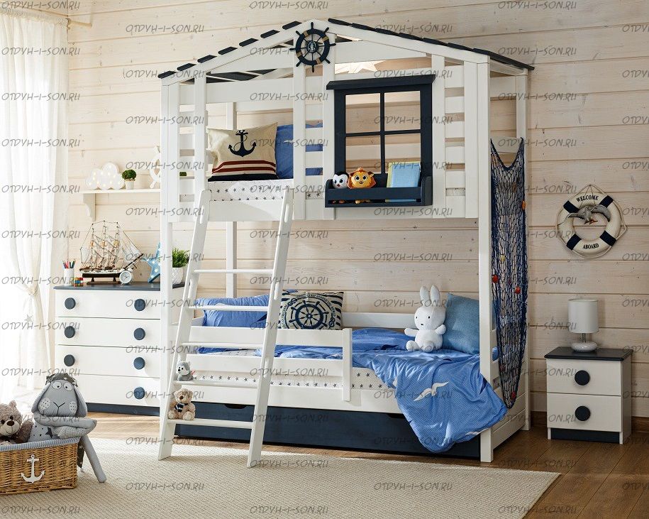 Кровать двухъярусная, Кровать-домик Roof №40F может быть изготовлена с кроватью для новорожденного внизу или как трехъярусная кровать, а также в любых размерах и цветах. Характеристики: