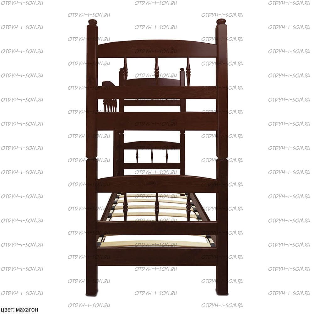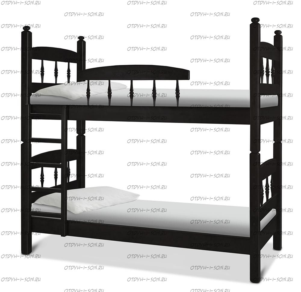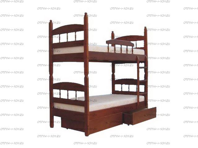 Кровать двухъярусная Кузя-2 (ВМК Шале) Характеристики: Габаритные размеры: от 80х190/200 до 90х190/200 Общая высота: 1730 мм. Высота нижних спинок: 580 мм. От пола до борта: 1800 мм. От царги до царги по высоте: 980 мм. Ширина лестницы: 360 мм. Габаритные Размеры: +8 см к ширине, +8 см к длине. (спального места) Масса в упаковке: 60 кг +- 10 кг. (Уточняйте, параметры зависят от размеров спального места) Объем в упаковке: 1,1 куб/м +- 0,5 куб/м (Уточняйте, параметры зависят от размеров спального места) Крепления кроватей фабрики ВМК Шале: мебельные стяжки, евроболты, заглушки Массив сосны 2 подкроватных ящика с колесиками, ящики не закрепляются в кровати и могут выдвигаться с любой стороны кровати (ящики докупаются отдельно). В базовом варианте с тыльной стороны ящиков декоративной планки не предусмотрено Высота днища нижнего яруса кровати: по запросу Высота днища верхнего яруса кровати: по запросу Высота от нижнего до вехнего спально места: по запросу Высота бортика: по запросу Общая высота зависит от высоты бортиков конкретной кровати, ровняется: от 175 до 190 см. Высота кровати может быть изменена по вашему желанию, без доплаты. Основание под матрас реечное Внимание: для любой модели кровати ВМК Шале возможно увеличение высоты бортиков кровати! Цвет: орех, бук, венге, груша, дуб, каштан, клен, красное дерево, махагон, ольха, сосна, белый (эмаль), слоновая кость (эмаль)