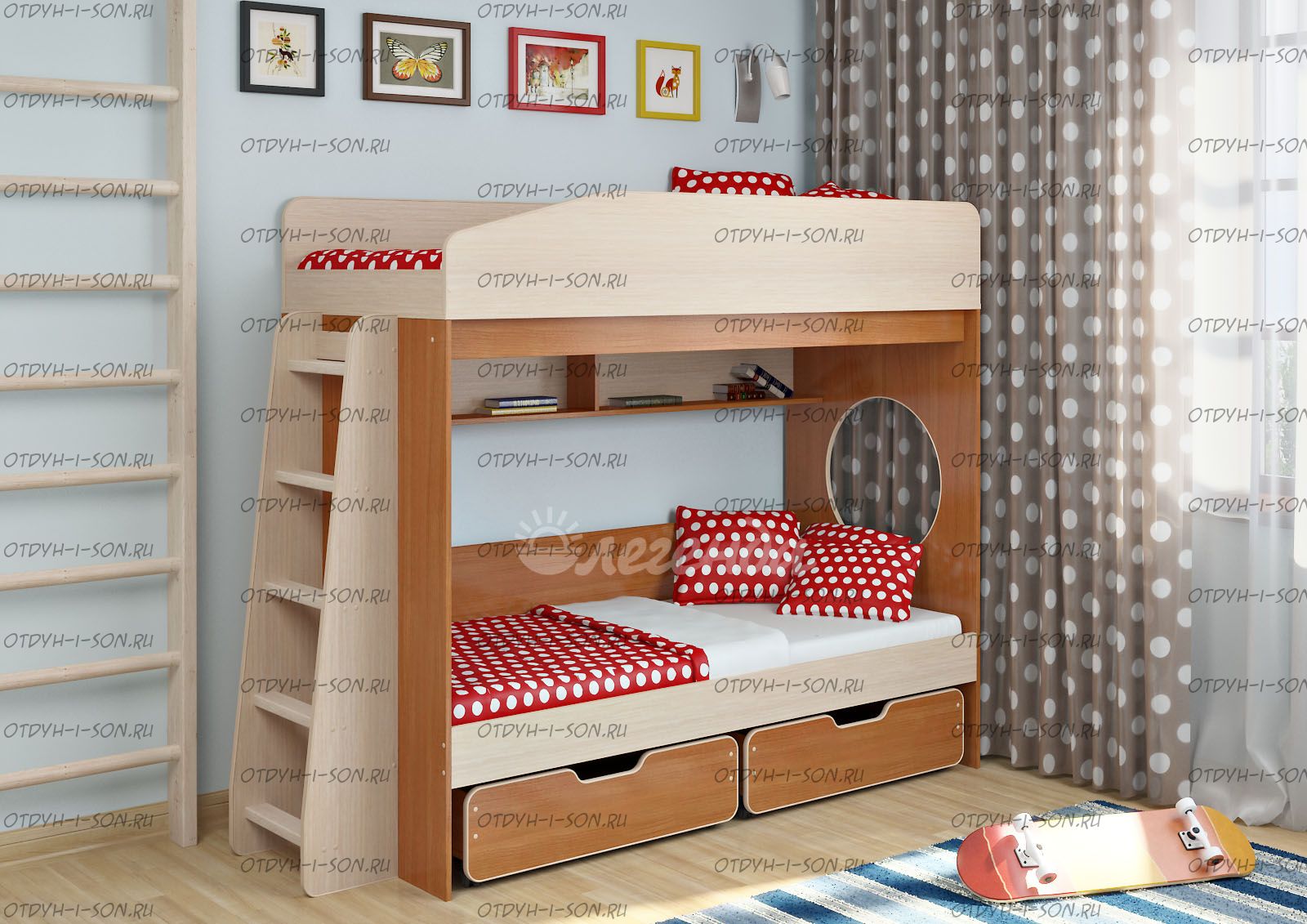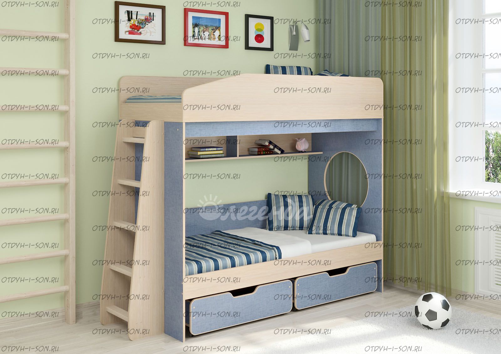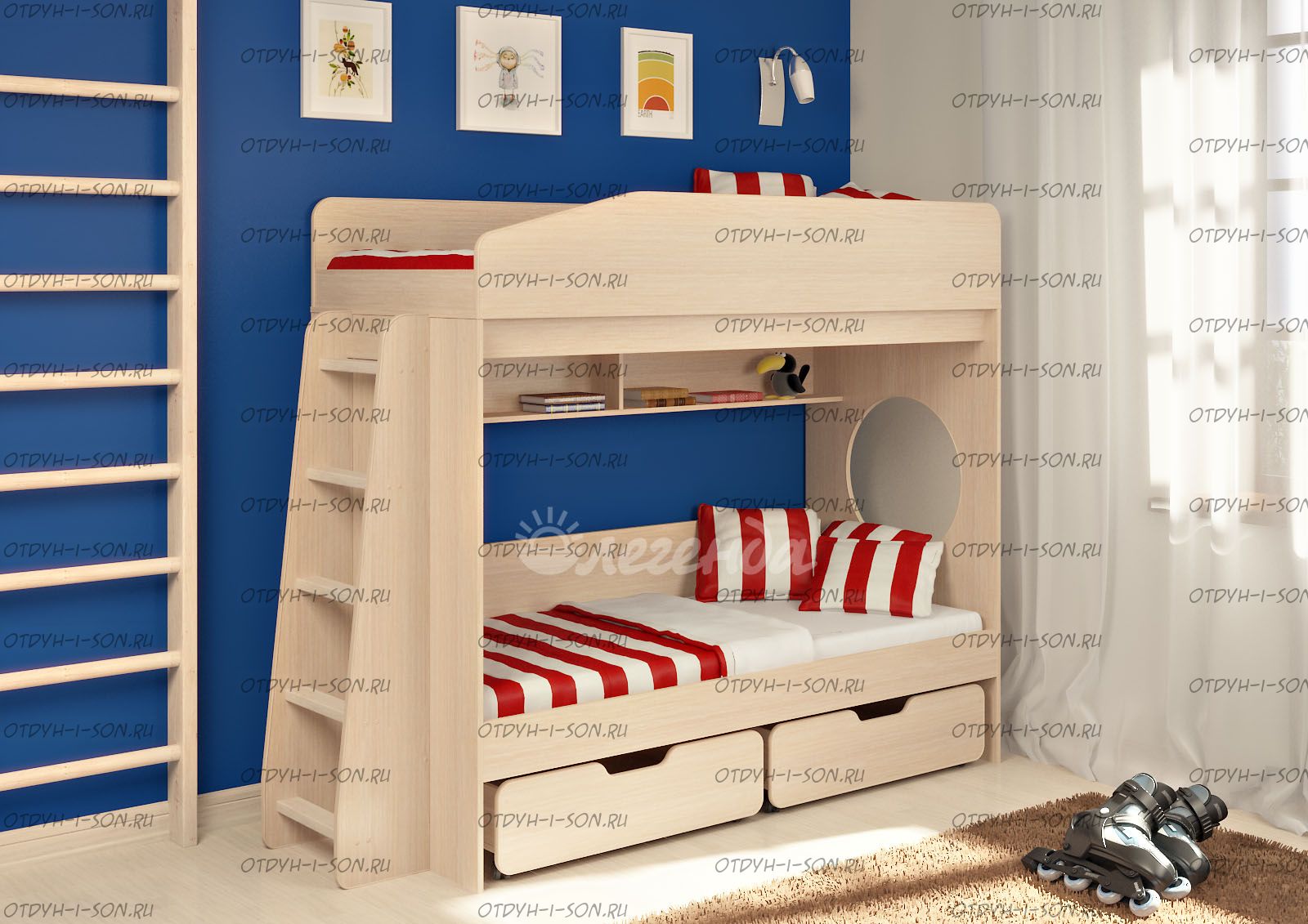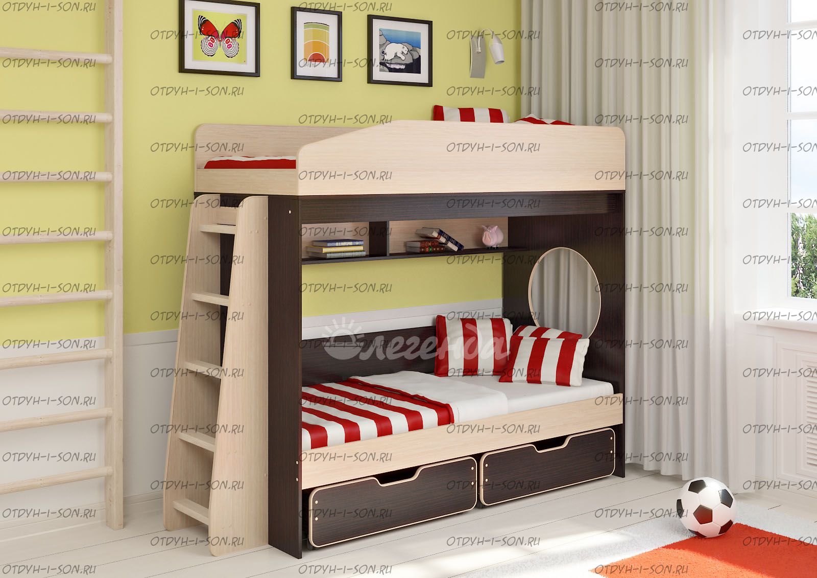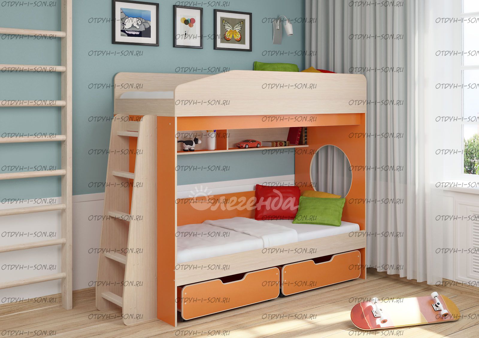 - Возможность дополнить двухъярусную кровать любыми другими модулями из серии Легенда.