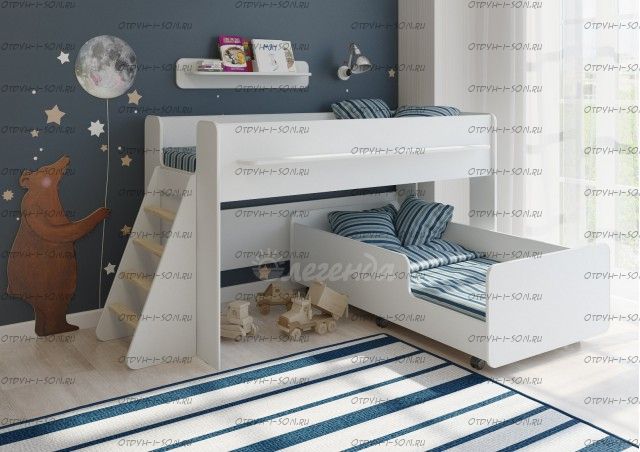 Кровать двухъярусная Легенда-23.3 Комплектация: Кровать-чердак Легенда 23, 1842×900×1128 Кровать нижняя Легенда 24, 1642×882×500 Лестница Легенда ЛП-22, 462×355×864 Матрас докупается отдельно Характеристики: Размер верхнего спального места 80Х180 см. Размер нижнего спального места 80х160 см. Внешние габариты (ДхШхВ): 2197×900×1128 Корпус : ЛДСП, 16мм. Комплект Легенда можно собирать на левую и на правую сторону. Дно кровати ламели Каждое спальное место кровати рассчитано на вес 80 кг Высокие бортики; Цвет корпуса: белый, ольха, венге светлый Цвет фасада: венге светлый, голубой, оранжевый, розовый, лайм, белый Предоплата: нет