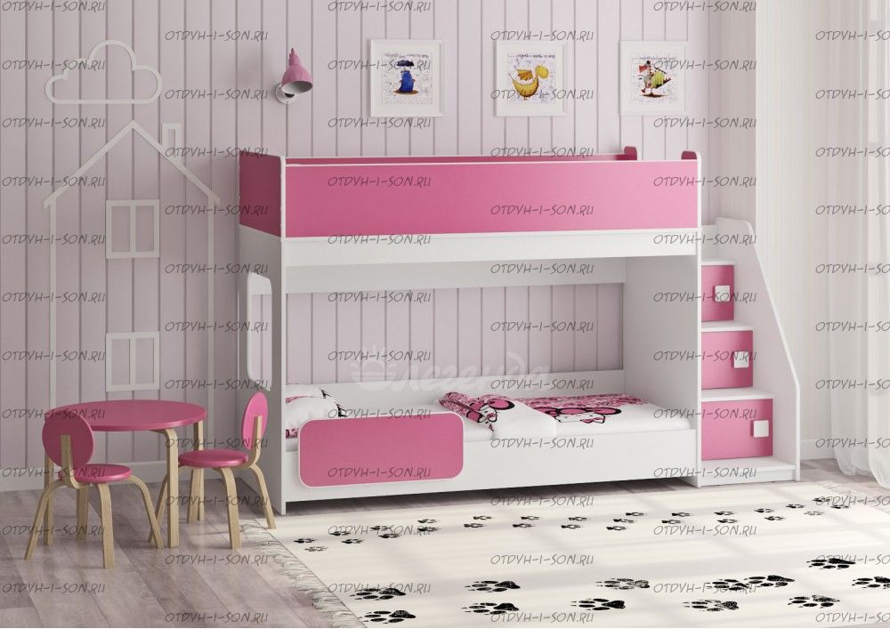 Кровать двухъярусная Легенда 43.4.1 Характеристики: Размер спального места: 75Х175 и 75х175 см. Внешние габариты кровати вместе с лестницей (ДхШхВ): 2245 × 808 × 1405 мм. Корпус : ЛДСП, 16мм. Высота изголовья: по запросу Высота изножья: по запросу Высота днища: по запросу Нестандарт: нет Вес: Объем: Цвет корпуса: белый Цвет фасада: белый, лен голубой, розовый, лайм Предоплата: нет