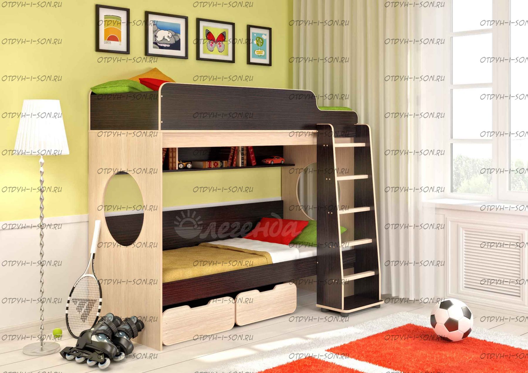 Детская мебель Легенда-7.1 - это удобная, компактная и функциональная двухъярусная кровать от Санкт-Петербургской мебельной фабрики. По соотношению цена-качество-функциональность этой модели просто нет равных: комплекс состоит из кровати-чердака, нижней кровати с подкроватными ящиками и полки для книг.