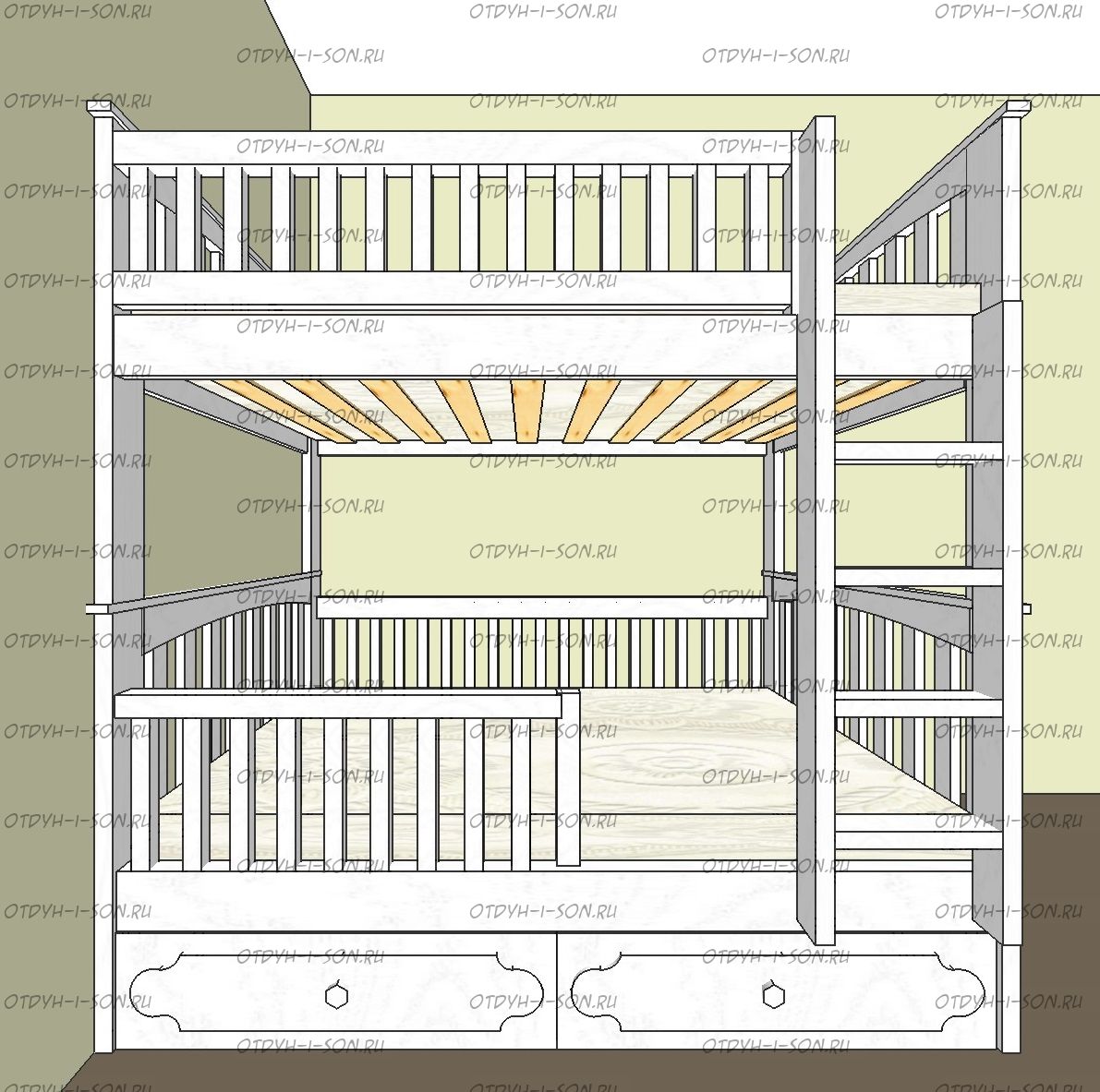 | Внимание | Подкроватные ящики могут быть изготовлены с фасадами вровень с нижней царгой кровати а могут быть немного внахлест! Уточняйте при заказе! Внимание: мы красим только фасады ящиков, сами ящики не прокрашиваются, |