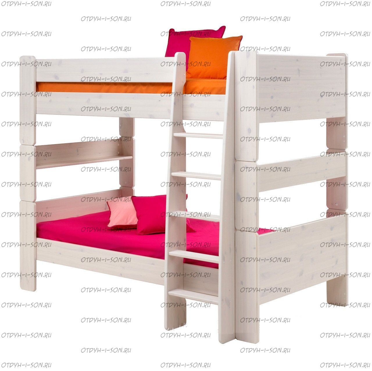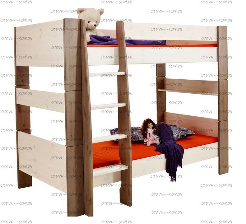 Кровать двухъярусная Лилия из массива дерева разбирается на две кроватки.