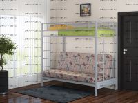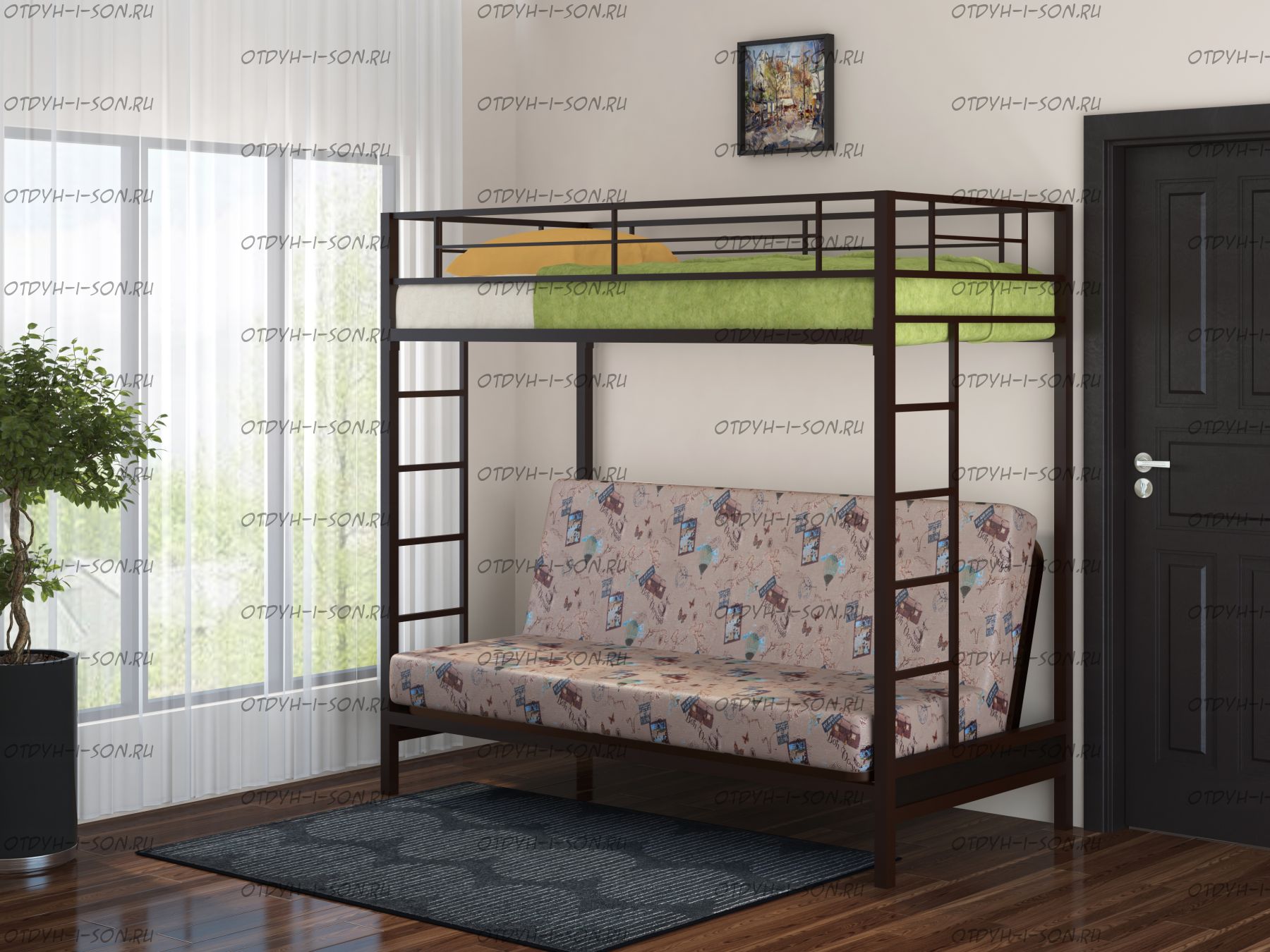 Кровать двухъярусная с диваном Мадлен ЯЯ ФМ Характеристики: Размер верхнего спального места: 90х190 см. (уточняйте) Размер нижнего спального места: 120Х190 см. (уточняйте) Внешние габариты (ДхШхВ): 1980х960х1865 мм. (уточняйте) Материалы каркаса: металл Диаметр трубы каркаса: Вес: 75 кг. Максимальная нагрузка на спальное место: 180 кг. Кровать поставляется в разобранном виде Цвета: коричневый, серый черный, слоновая кость при заказе кровати с диваном Мадлен необходимо указывать цвет гобелена (обивки): Пифагор или Марки