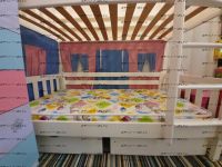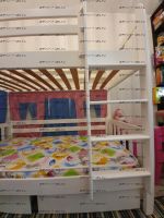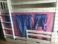 Кровать двухъярусная Мальвина - это детская кровать из массива дерева от МебельХолдинг. Комплектация: Кровать игровая 2х-ярусная из массива дерева Шторки (в зависимости от комплектации изделия) Подушки - в комплект не входят Бортики для нижнего яруса - в комплект не входят Внутренние габариты кровати-чердака Мальвина: Высота нижнего спального места: 45 см. Высота верхнего спального места: 120 или 130 см. Расстояние между ярусами: 75 или 90 см. Высота надстройки: 50 см. Высота башни: 75 см. Расположение лестницы на Ваш выбор в двух вариантах: 1. Лестница под углом к кровати: плюс 70 см к ширине кровати 2. Лестница расположена вертикально Горка: плюс 200 см к ширине кровати Характеристики: Размер спального места: 80х160 или 80Х180 Внешние габариты (ДхШхВ): 1700*930*h1500 или 1900*930*h1650 мм. Массив сосны с текстильным декором. 80х160: Вес 52,6, объем 0,52, 6 упаковок 80х180: Вес 58, объем 0,57, 6 упаковок Кол-во упаковок: 6 мест. Цвета корпуса: Натуральное дерево, Белый, Итальянский орех, Ольха, Венге Цвета текстильного декора: розовый-голубой (основной), но можно выбирать и другие цвета или их сочетания. Цвета текстильных элементов дополнительные (возможно изготовление в этих цветах по Вашему выбору): 0 Белый, 4 Желтый, 5 Синий, 3 Светло-зеленый, 8 Серо-голубой, 15 Сирень, 20 Розовый, 39-1 Темно-бежевый, 40 Бежевый, 16 Красный