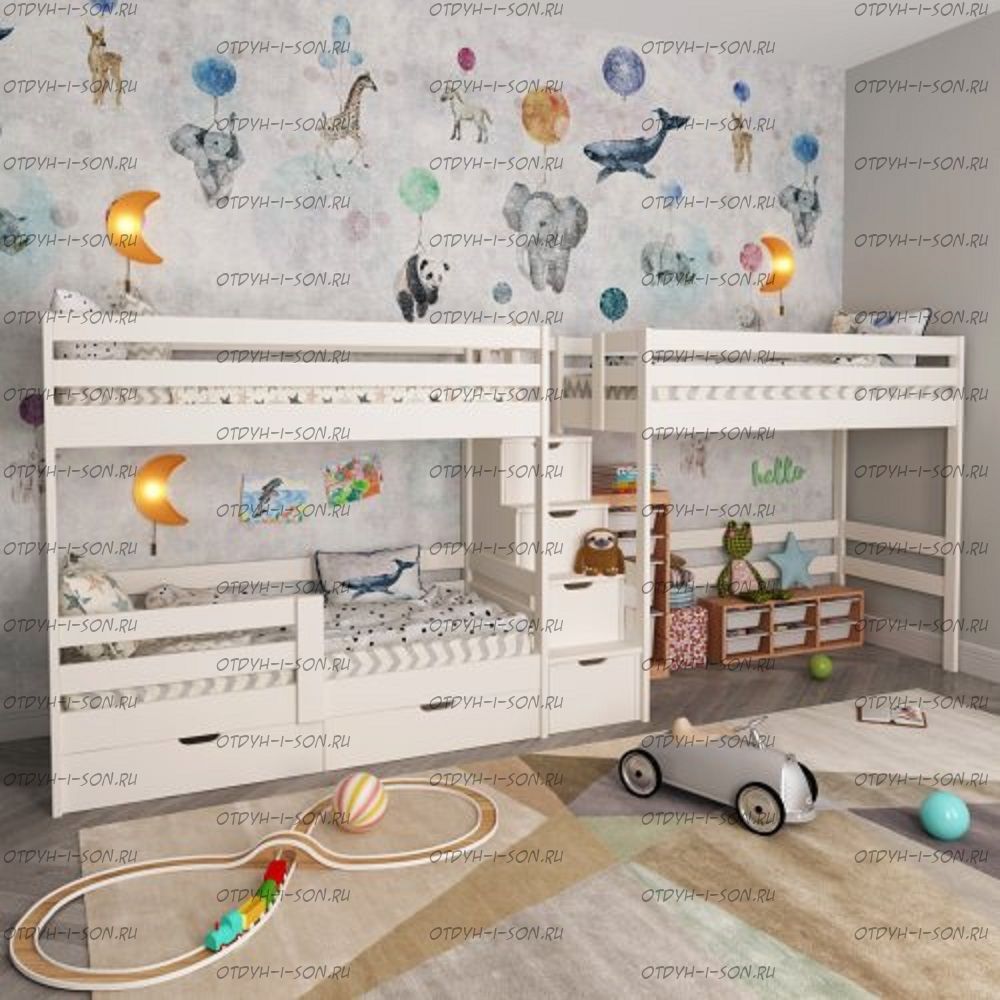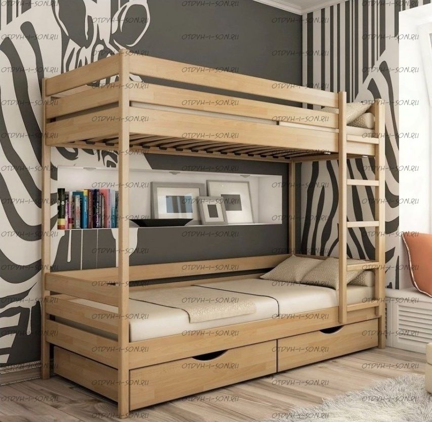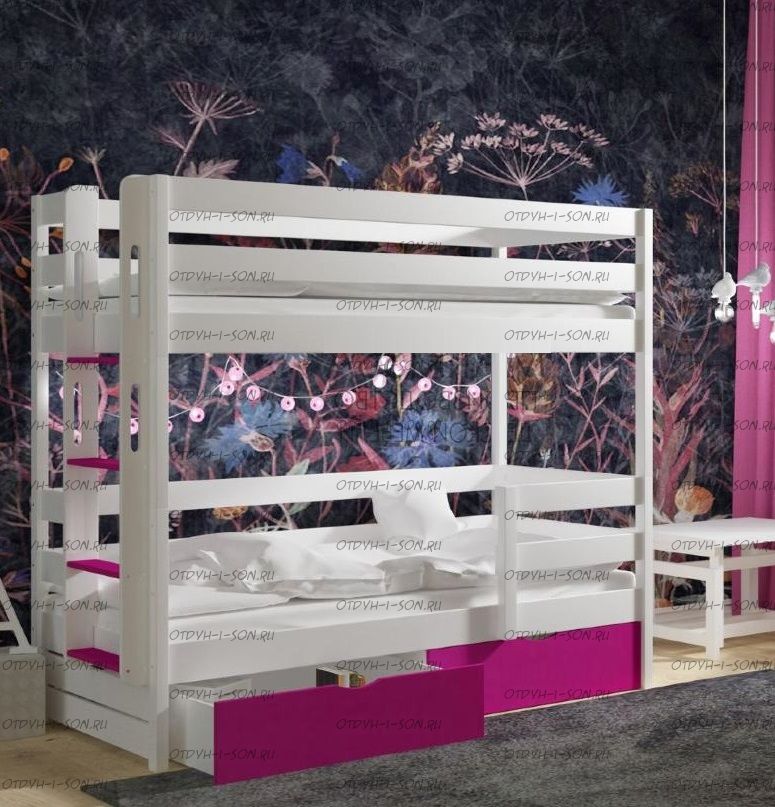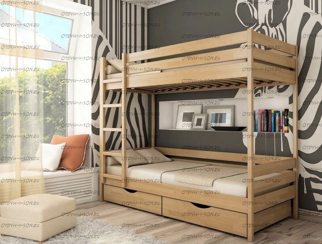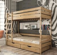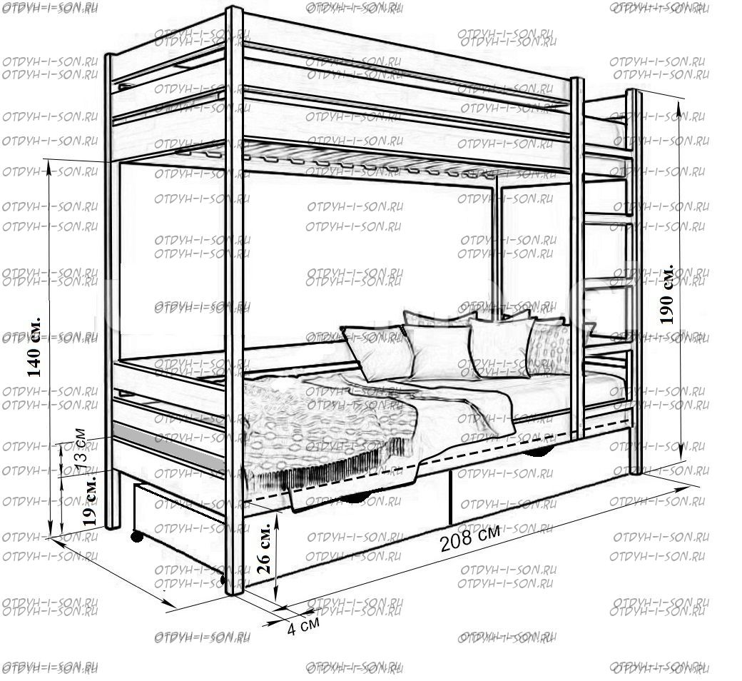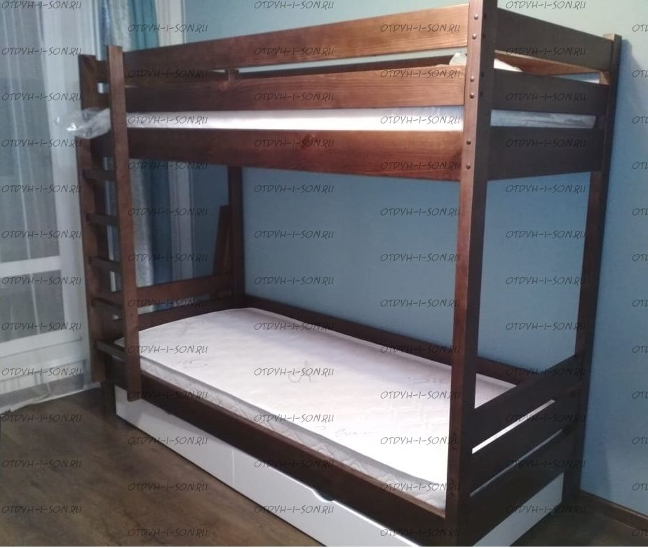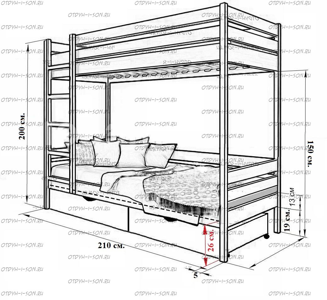 Кровать двухъярусная Классика Модуль №3, любые размеры Комплектация: Кровать двухъярусная Ника Лестница Ника Подкроватные ящики Бортик у стены для нижнего яруса докупается отдельно! Характеристики: Размер спального места на выбор: 70х160 + 70х160, 70х170 + 70х170, 80Х190 + 80х190, 80Х200 + 80х200, 90Х190 + 90х190, 90Х200 + 90х200, 100х190 + 100х190, 100х200 + 100х200 см. и любые другие Габаритные размеры кровати: +8 см. к ширине, +8 см. к длине. (спального места) Глубина утапливания матраса: 5-6 см. (уточняйте у оператора) Материалы: сосна и мебельная фанера. Также возможно изготовление мебели из массива дуба, бука, ясеня. Возможно изготовление кроватей любых габаритных размеров. Крепление узлов кровати: специальные кроватные стяжки, саморезы, мебельный крепеж, пластиковые заглушки в цвет изделия. Боковые царги кровати закрепляются к спинкам при помощи надежных кроватных стяжек, которые не видны снаружи. Вес в упаковке: Объём в упаковке: Кол-во мест: Цвет: орех, бук, венге, груша, дуб, каштан, клен, красное дерево, махагон, ольха, сосна, белый (эмаль), слоновая кость (эмаль)