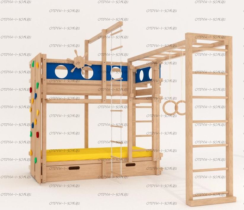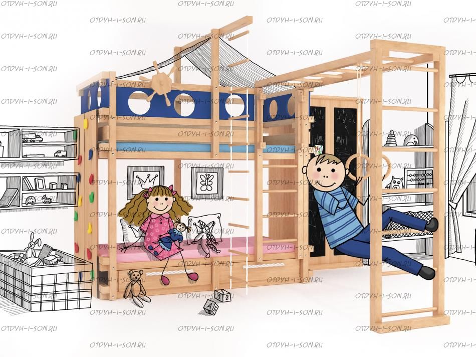 Кровать двухъярусная Пиратский корабль массив №ДИ Характеристики: Размер спального места: любой по Вашему пожеланию. Внешние габариты (ШхГхВ): +10-15 см к ширине и длине спального места кровати Цвет (морилка): беленый дуб, средний орех, сосна (натуральный), венге, светлый орех, ольха, орех, бук, красное дерево, клен красный, груша Цвет (эмаль) (+20 % от стоимости): фисташковый, белый, черный, темно-зеленый, слоновая кость (белый в бежевый), сиреневый, синий, светло-зеленый, розовый, красный, желтый, дуб молочный (белый в розовый), голубой Производство Владимирской мебельной фабрики, кровать доставляется напрямую от производителя, самовывоз ограничен.