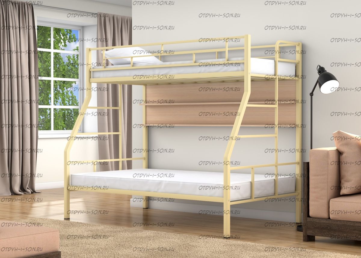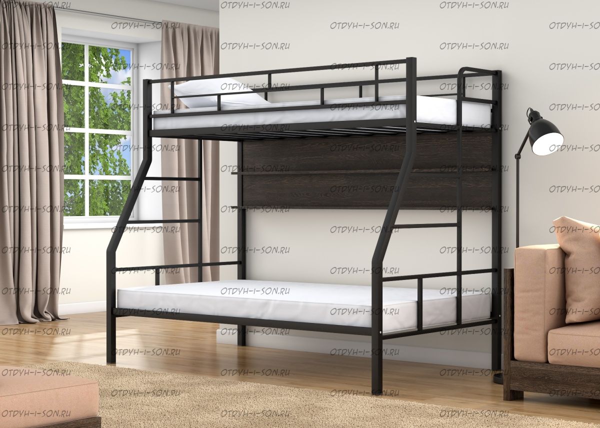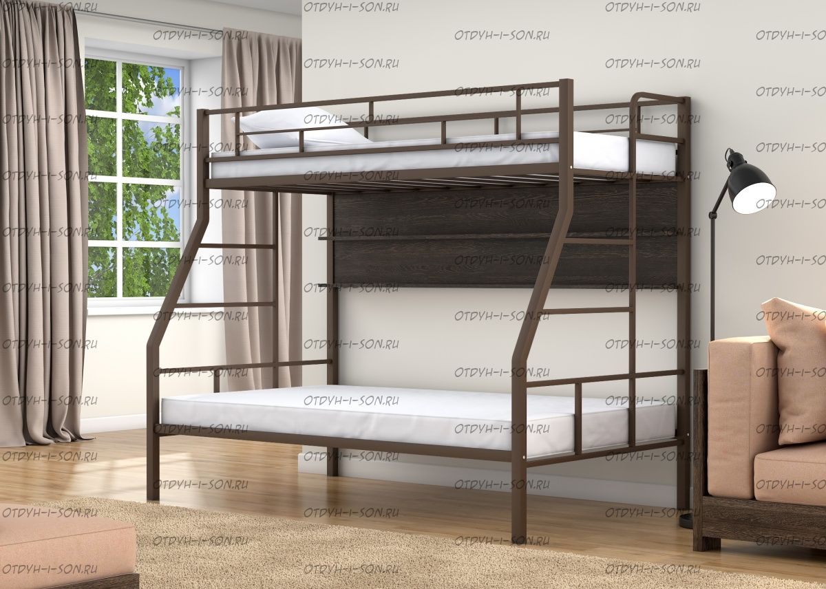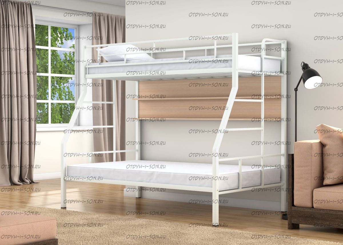 Кровать двухъярусная Раута Твист +П Лофт (с полкой) Характеристики: Размер верхнего спального места: 90Х190 см. Размер нижнего спального места: 120х190 см. Внешние габариты (ДхШхВ): 1990Х1230х1710 мм. Высота от пола до спального места (мм.): 1370 Материалы каркаса: металл Диаметр трубы каркаса: Вес: 70 кг Максимальная нагрузка на спальное место: 180 кг. Кровать поставляется в разобранном виде Цвета: коричневый, серый черный, слоновая кость