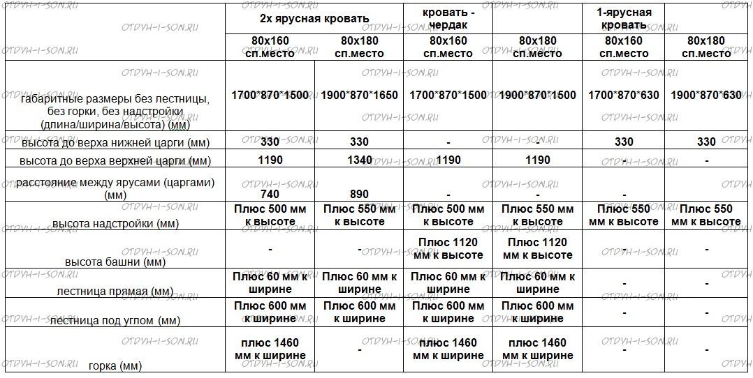 | Рекомендуемая высота матраса | Верхний ярус 10 см |