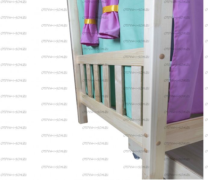 Кровать двухъярусная Скворушка-3 (Белоснежка) - это детская кровать из массива дерева от МебельХолдинг. Комплектация: Кровать игровая 2х-ярусная из массива дерева Шторки (в зависимости от комплектации изделия) Подушки - в комплект не входят Бортики для нижнего яруса - в комплект не входят Внутренние габариты кровати-чердака Скворушка-3: Высота нижнего спального места: 45 см. Высота верхнего спального места: 120 или 130 см. Расстояние между ярусами: 75 или 90 см. Высота надстройки: 50 см. Высота башни: 75 см. Расположение лестницы на Ваш выбор в двух вариантах: 1. Лестница под углом к кровати: плюс 70 см к ширине кровати 2. Лестница расположена вертикально Горка: плюс 200 см к ширине кровати Характеристики: Размер спального места: 80х160 или 80Х180 Внешние габариты (ДхШхВ): 1700*930*h2000 или 1900*930*h2200 мм. Массив сосны с текстильным декором. Вес: 63 кг. Объем: 0,3 м3 Кол-во упаковок: 6 мест. Цвета: Натуральное дерево, Белый, Итальянский орех, Ольха, Венге Цвета текстильных элементов стандартные: Скворушка - розово/голубой Скворушка-1 - синий/белый Скворушка-2 - синий/красный/желтый Скворушка-3 - фиолетовый/голубой Скворушка-4 - розовый/зеленый (изумрудный) + желтая занавеска Скворушка-5 - бежевый двух оттенков Цвета текстильных элементов дополнительные (возможно изготовление в этих цветах по Вашему выбору): 0 Белый, 4 Желтый, 5 Синий, 3 Светло-зеленый, 8 Серо-голубой, 15 Сирень, 20 Розовый, 39-1 Темно-бежевый, 40 Бежевый, 16 Красный