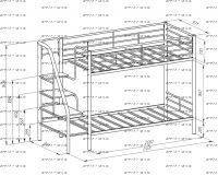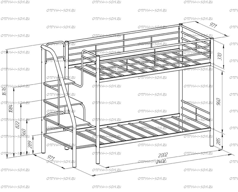 Кровать двухъярусная Толедо ФМ Характеристики: Размер верхнего спального места: 90Х190 см. (уточняйте) Размер нижнего спального места: 90х190 см. (уточняйте) Внешние габариты (ДхШхВ): 240х97х168 см. (уточняйте) Материалы каркаса: металл Диаметр трубы каркаса: 5,1 см. Толщина метала: диаметр 4 см. Вес: 73 кг. Максимальная нагрузка на спальное место: 300 кг Кровать поставляется в разобранном виде Цвета: коричневый, серый черный, слоновая кость