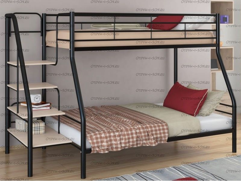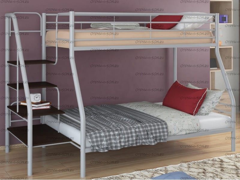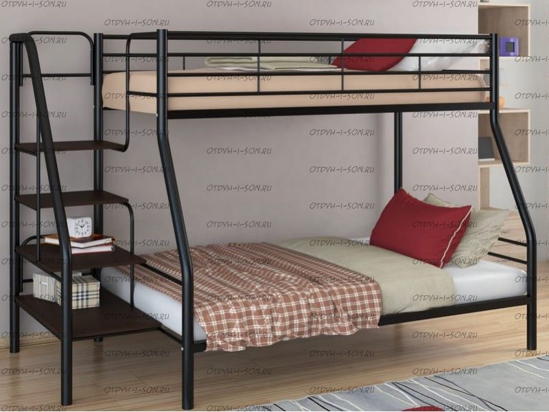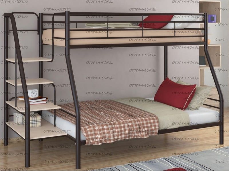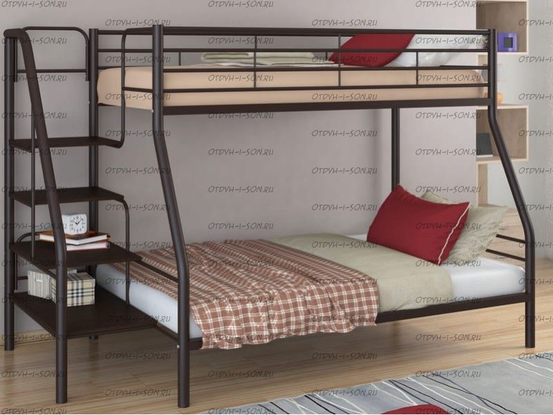 Кровать двухъярусная Толедо-1 ФМ Характеристики: Размер верхнего спального места: 90Х190 см. (уточняйте) Размер нижнего спального места: 120х190 см. (уточняйте) Внешние габариты (ДхШхВ): 2401х1271х1676 мм. (уточняйте) Материалы каркаса: металл Диаметр трубы каркаса: 5,1 см. Толщина метала: 1.0 Вес: 76 кг. Максимальная нагрузка на спальное место: 180 кг. Кровать поставляется в разобранном виде Цвета: коричневый, серый черный, слоновая кость
