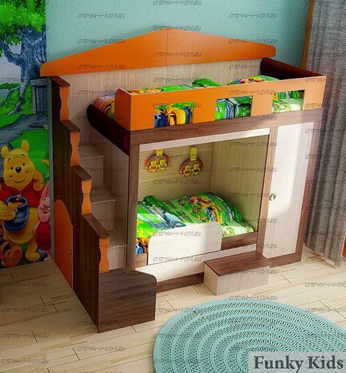 Многофункциональный модуль Фанки Хоум для двоих детей разных возрастов. Верхнее спальное место 1800х800мм; нижнее - 1300х800мм. Для дополнительной безопасности возможно приобрести съемный борт 13/17СВ на нижнюю кровать. В конструкции предусмотрен пенал со штангой и 3 полками. Безопасная тумба лестница с поручнями. Мягкие полукруглые элементы на верхней кровати защитят ребенка от ушибов. Элементы крепятся в изножья и изголовье имеют мягкое наполнение и обтянуты тканью Астра коричневого цвета. Под лестницей есть домик с дверцей для игр. Конструкция универсальна, к изделию прилагается схема сборки. Корпус выполнен в двух цветах дуб кремона и дуб шамони. Фасад на выбор из 5 цветов.
