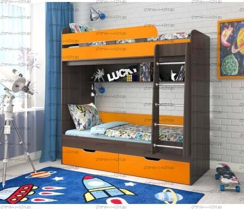 Кровать двухъярусная Юниор-5 может быть доукомплектован любым из двух бортиков: Малыш или Юниор. Характеристики: Верхнее спальное место 80х190 см. Нижнее спальное место 80х190 см. Габаритные размеры (ШхДхВ): 832 х 1932 х 2160 мм. Материалы: ЛДСП, МДФ, ДВП, металл. Вес: Объем: Кол-во пакетов: . Матрац можно отдельно заказать также на нашем сайте Цвета корпуса: Дуб молочный, венге, орех донской, вишня, бодего темный, белое дерево. Цвета фасада: розовый, оранжевый, ирис, лайм, голубой, зеленый, бежевый, красный, бодего темный, дуб молочный, венге, вишня, орех донской, белое дерево.