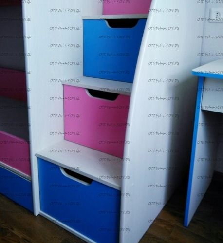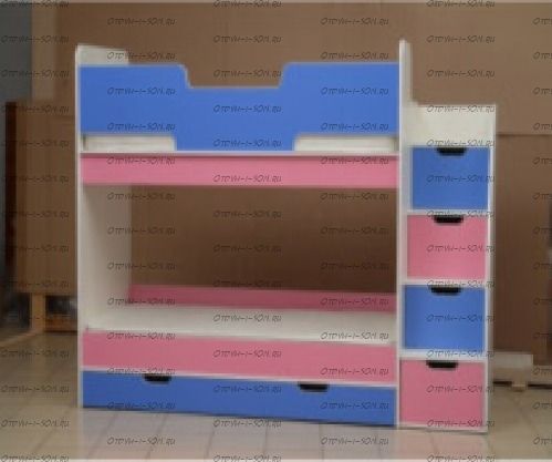 Кровать двухъярусная Юниор 9 белый+ярко-розовый+синий