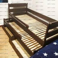 В зависимости от размера комнаты и возраста ребенка возможен выбор различной ширины кровати 70Х190, 80Х190 и 90Х190. Детская кровать из массива Малыш это экологически чистый и эстетически приятный товар, ведь материал исполнения кровати – натуральная древесина сосны, дуба или бука.