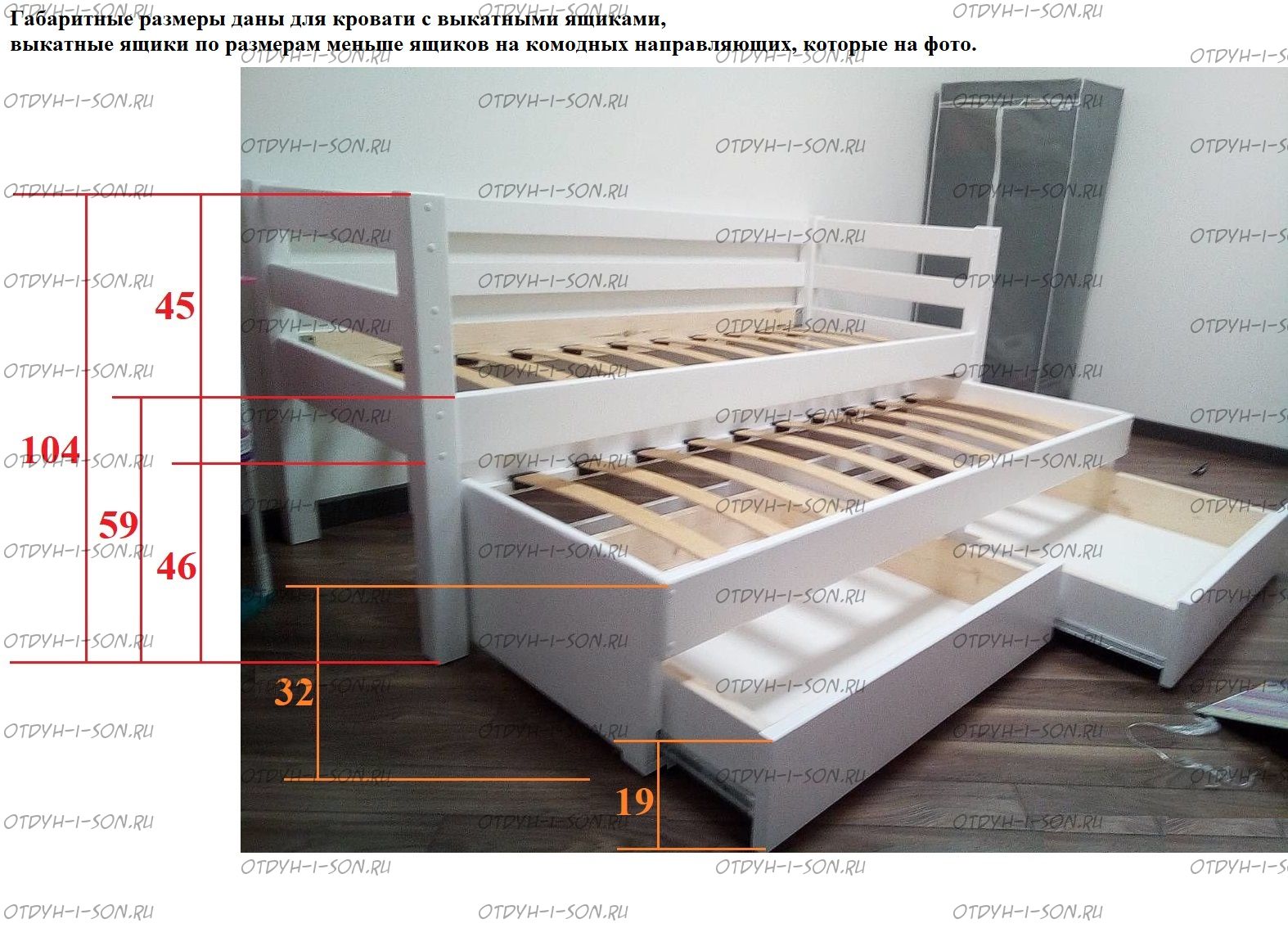 | глубина подкроватных ящиков | 60 см. |