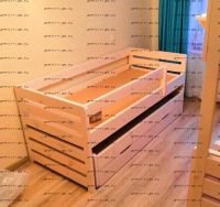 В зависимости от размера комнаты и возраста ребенка возможен выбор различной ширины кровати 70Х190, 80Х190 и 90Х190. Детская кровать из массива Малыш это экологически чистый и эстетически приятный товар, ведь материал исполнения кровати – натуральная древесина сосны, дуба или бука.