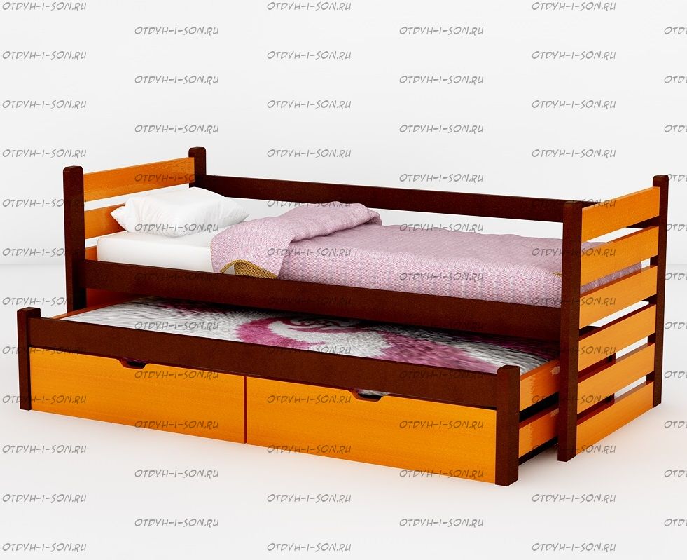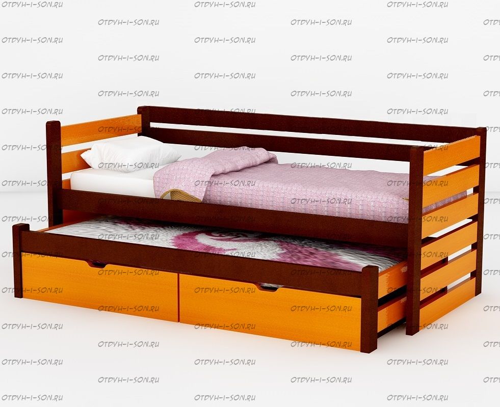 Кровать двухъярусная выкатная Меган №7W, любые размеры это качественно исполненная из массива дерева детская и подростковая кровать. Кровать Немо удобна и функциональна, и прекрасно впишется в комнату ребенка, создав уют, добавит функциональности и сохранит достаточное жизненное пространство детской комнаты.