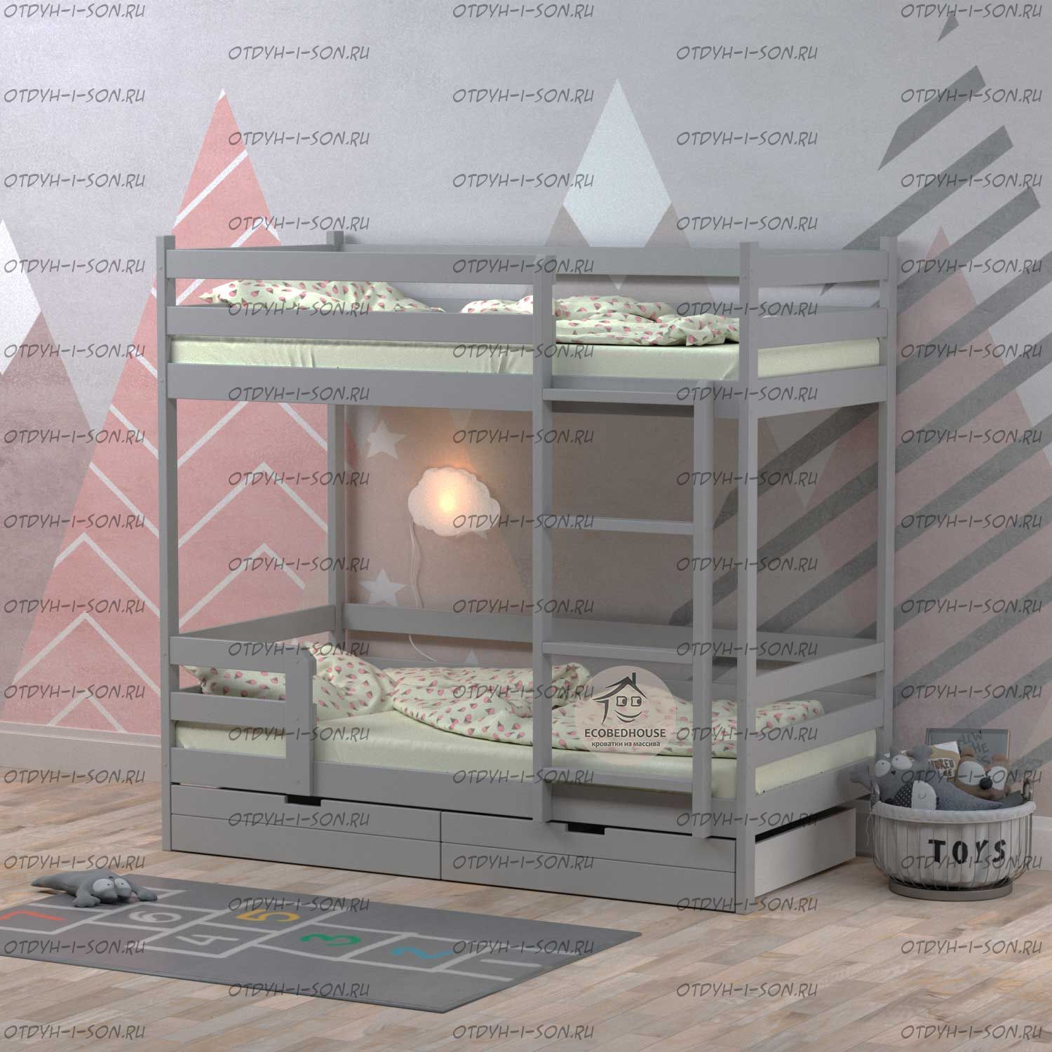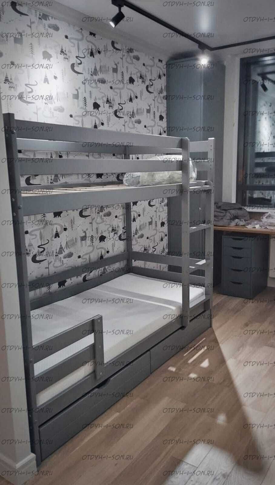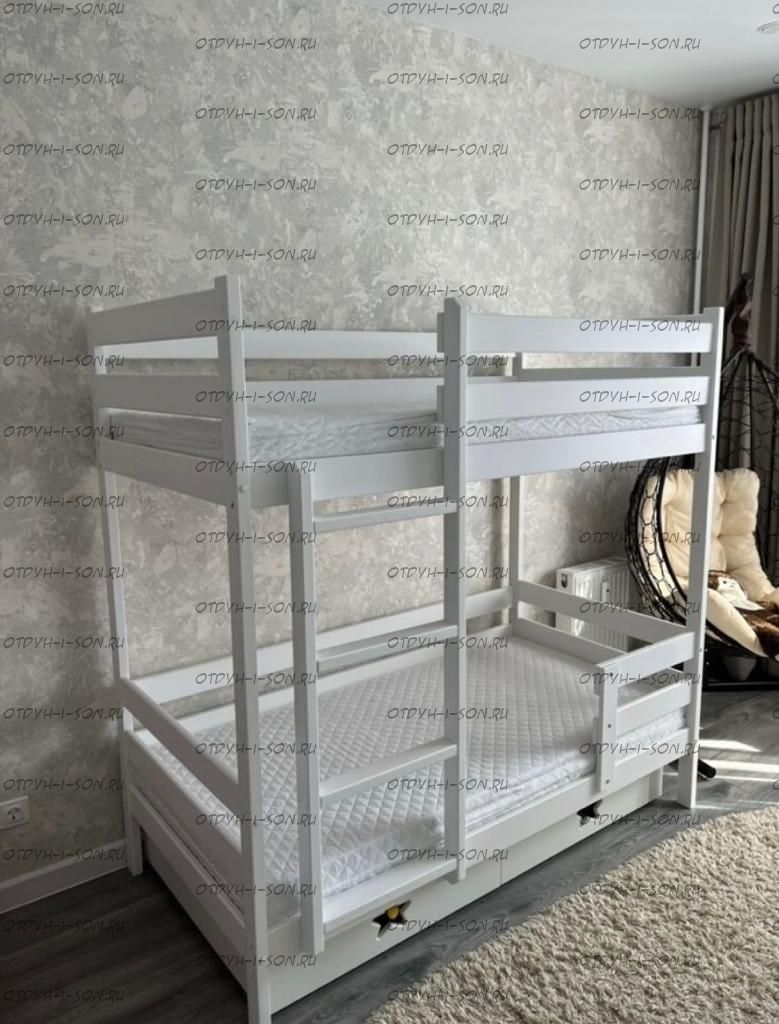 Кровать двухъярусная Меган 1 Fairy Tail массив березы. Характеристики: Размер спального места на выбор: 70х140, 70х160, 80Х190, 80Х200, 90Х190, 90Х200, 100х190, 100х200, 120х190, 120х200 см. и любые другие Габаритные размеры кровати: +7 см. к ширине, +8 см. к длине. (спального места) высота борта - 360 мм высота между ярусами - 1000 мм высота от пола до спального места - 270мм брусок каркаса - 50х40 мм вес кровати - 55 кг, с ящиками 80 кг максимальная нагрузка на ложе - 200 кг для детей от 4 до 18 лет Глубина утапливания матраса: 5-6 см. (уточняйте у оператора) Подкроватные ящики: за дополнительную плату Материалы: массив березы. Возможно изготовление кроватей любых габаритных размеров. Крепление узлов кровати: специальные кроватные стяжки, саморезы, мебельный крепеж, пластиковые заглушки в цвет изделия. Боковые царги кровати закрепляются к спинкам при помощи надежных кроватных стяжек, которые не видны снаружи. Вес в упаковке: 100 кг +/- 10 кг Объём в упаковке: 1 м3 +/- 0,1 м3; Кол-во мест: 3 шт (Уточняйте, параметры зависят от размеров спального места) Цвет: натуральный массив, белый, серый, розовый, лак 1. Дерево выдерживает большие нагрузки, особенно ударные; 2. Высокая плотность и упругость - служба десятилетиями без сколов, трещин и потери прочности; 3. Не расшатывается со временем; 4. Безопасность для аллергиков - не пахнет; 5. Кроватка из натурального дерева ионизирует и освежает воздух в комнате. Детская кроватка окрашена безопасной водо-дисперсионной краской, специально разработана для детской мебели Выдерживает до 200 кг, собирается с помощью стяжек винт в бочонок. Легко соберете кроватку по подробной инструкции Гарантия 12 месяцев 6. В комплекте уже идут заглушки на винты и наклейки на неиспользуемые отверстия. ✅Дополнительно: -вместительные ящики на колёсиках или третье спальное место. Глубина ящика 75 см.