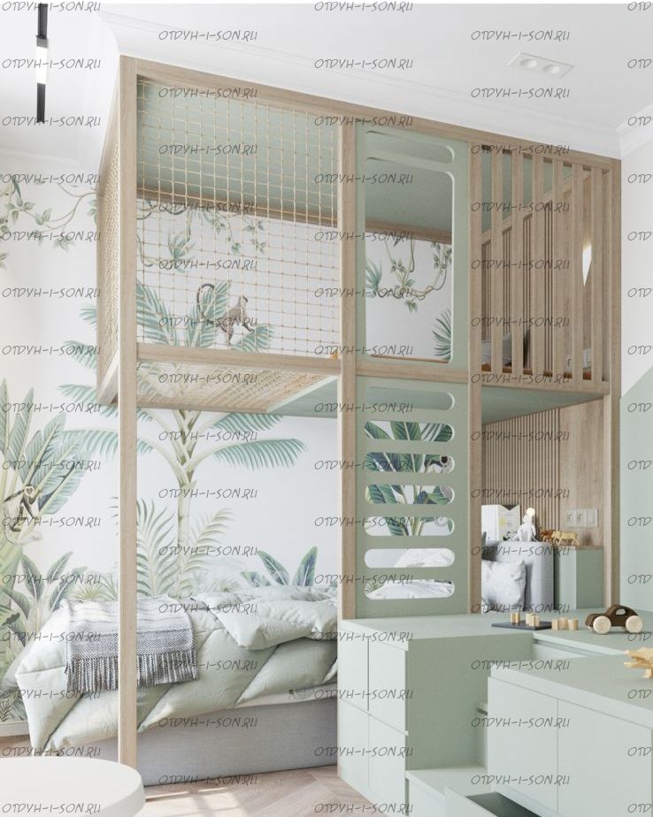 Кровать двухъярусная, Кровать-домик Fantasy Sky №10 может быть изготовлена с кроватью для новорожденного внизу или как трехъярусная кровать, а также в любых размерах и цветах. Характеристики: