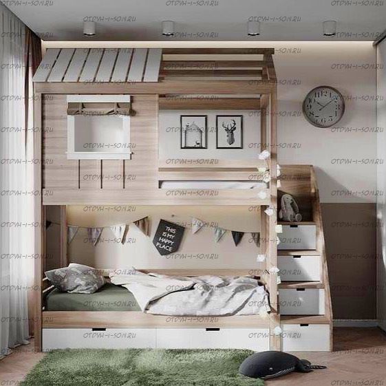 Кровать двухъярусная, Кровать-домик Felicia, два окна. Возможно изготовление кровати-домика с четырьмя окнами.