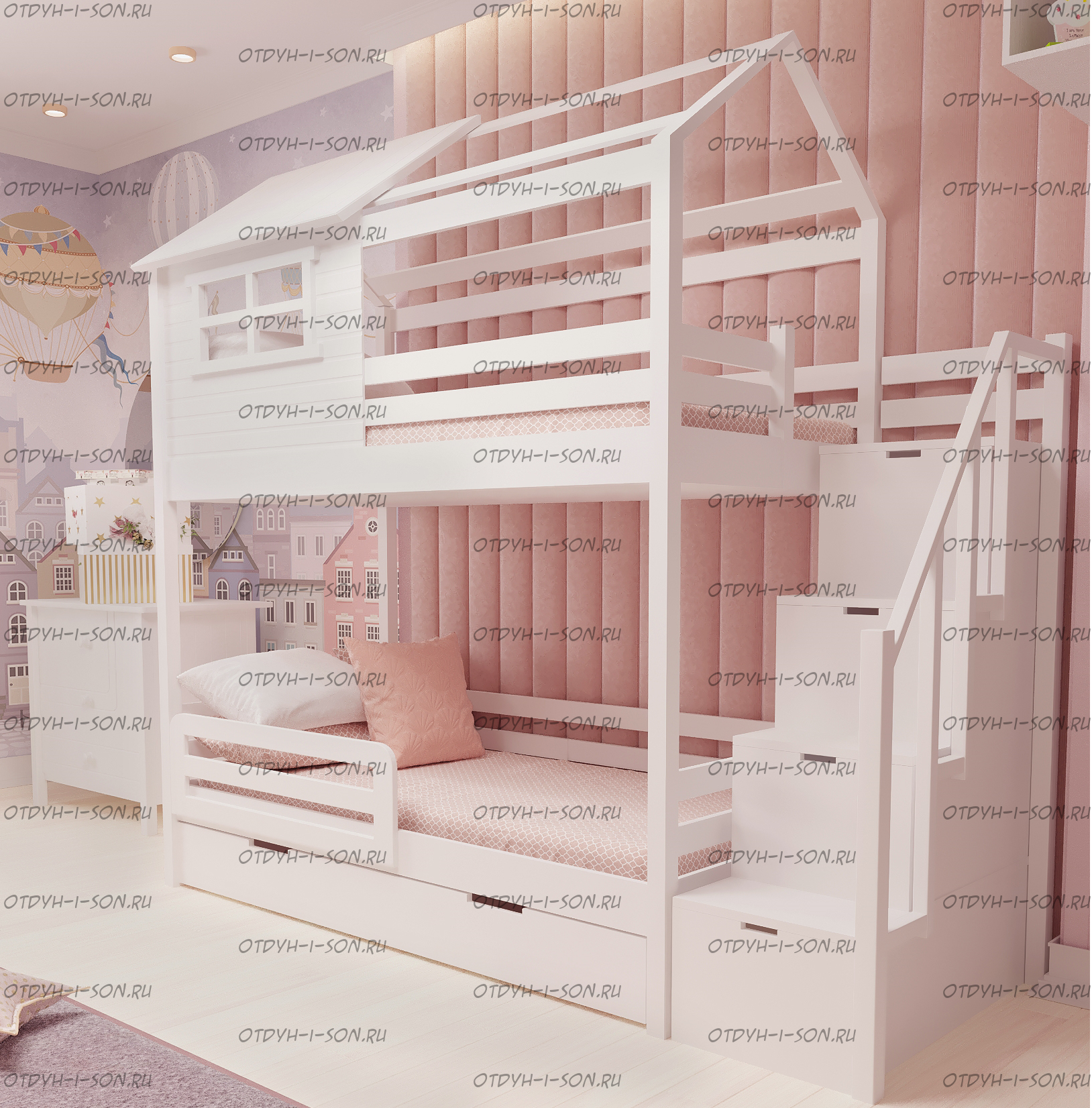 Кровать двухъярусная, Кровать-домик Felicia №55B Характеристики: Любые размеры и цвета.