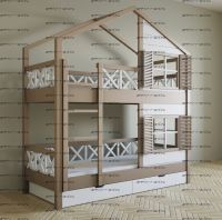 Кровать двухъярусная домик Прованс Roof №5Y3 может быть изготовлена с кроватью для новорожденного внизу или как трехъярусная кровать, а также в любых размерах и цветах. Характеристики: любые размеры, цвета любые материалы: массив сосны, березы или бука Схемы могут отличаться из-за высоты кровати.