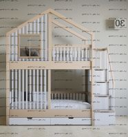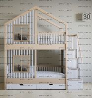 Кровать двухъярусная домик Прованс Roof №5Y2+ может быть изготовлена с кроватью для новорожденного внизу или как трехъярусная кровать, а также в любых размерах и цветах. Характеристики: любые размеры, цвета любые материалы: массив сосны, березы или бука Схемы могут отличаться из-за высоты кровати.
