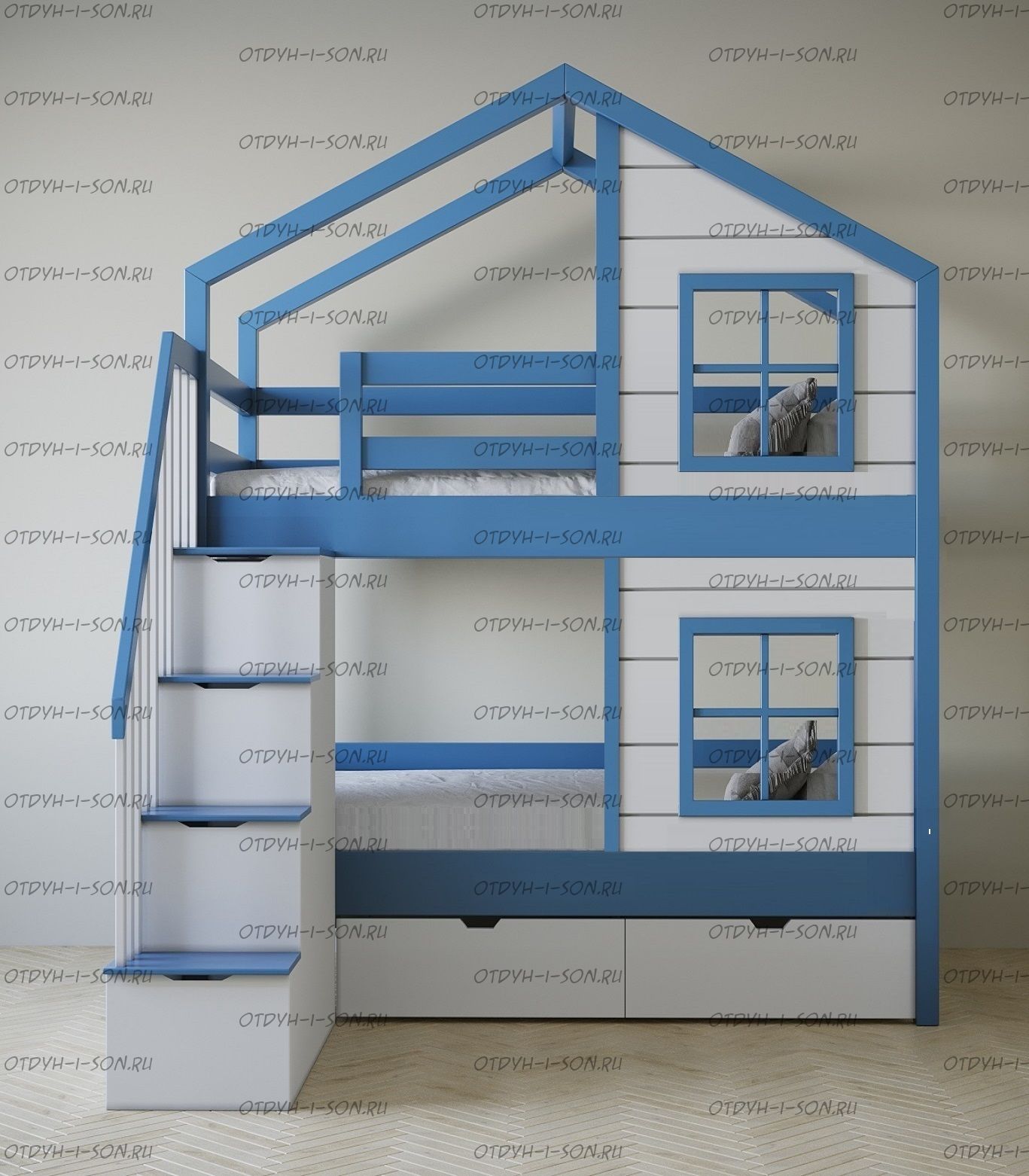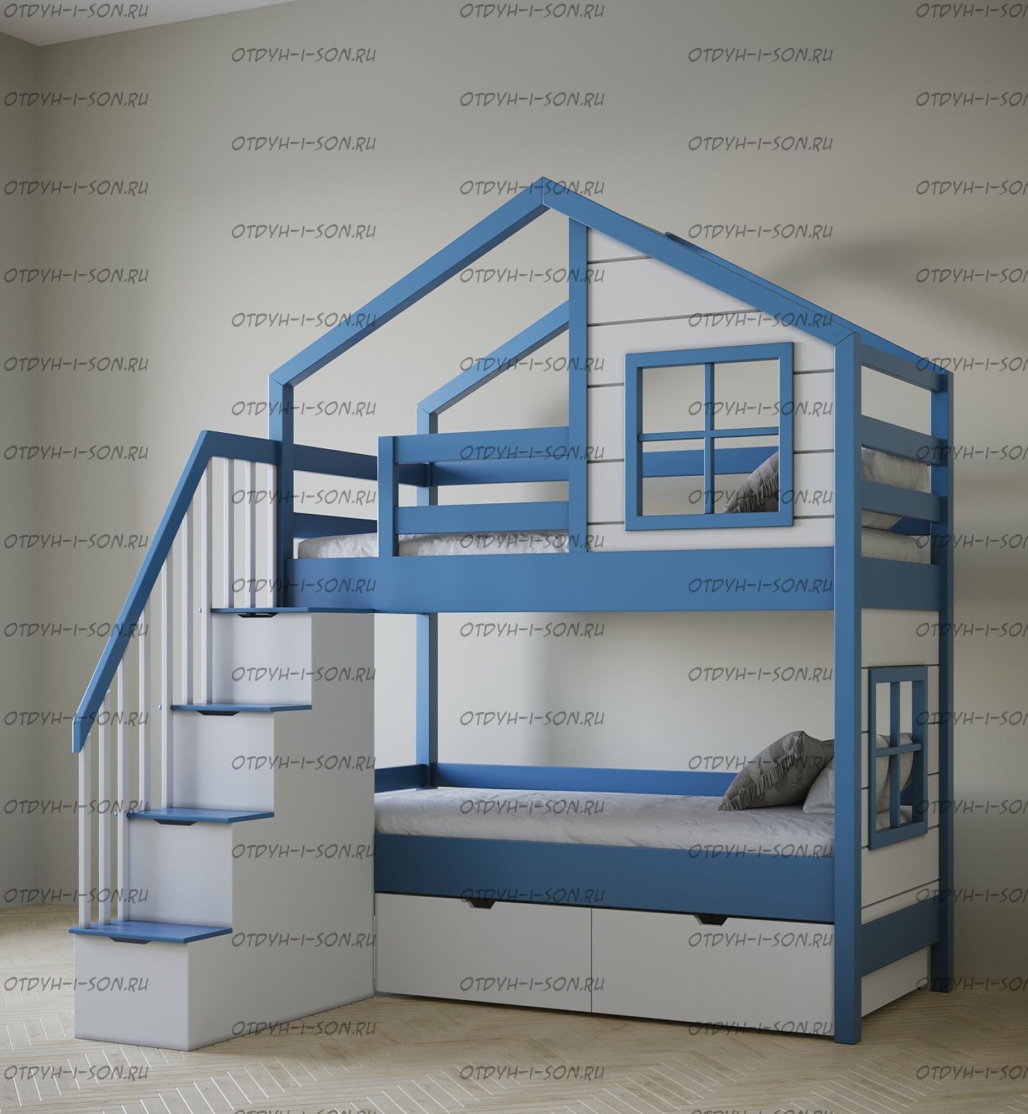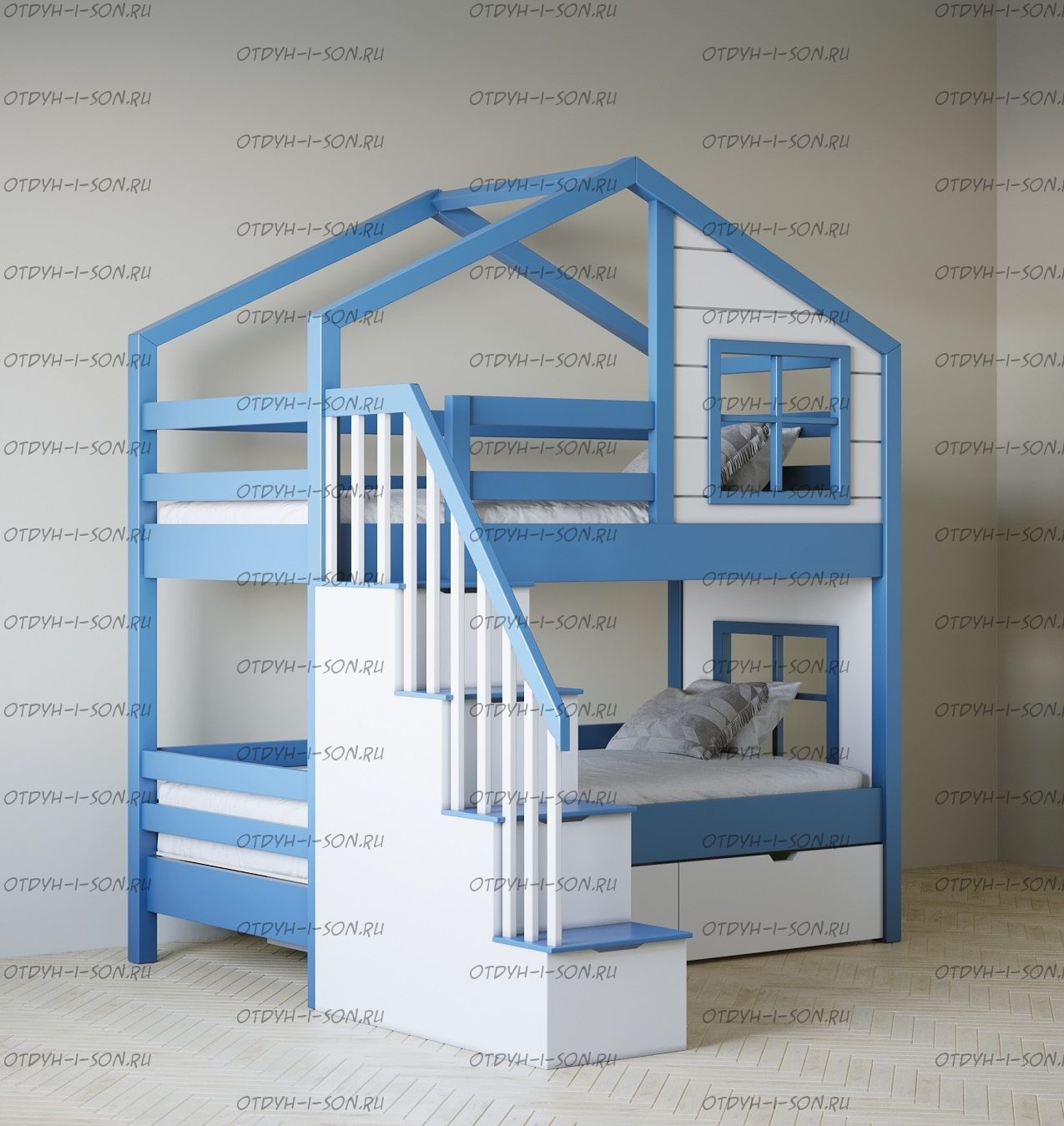 Кровать двухъярусная домик Roof Corner Style №5N3 может быть изготовлена с кроватью для новорожденного внизу или как трехъярусная кровать, а также в любых размерах и цветах. Характеристики: любые размеры, цвета любые материалы: массив сосны, березы или бука Схемы могут отличаться из-за высоты кровати.