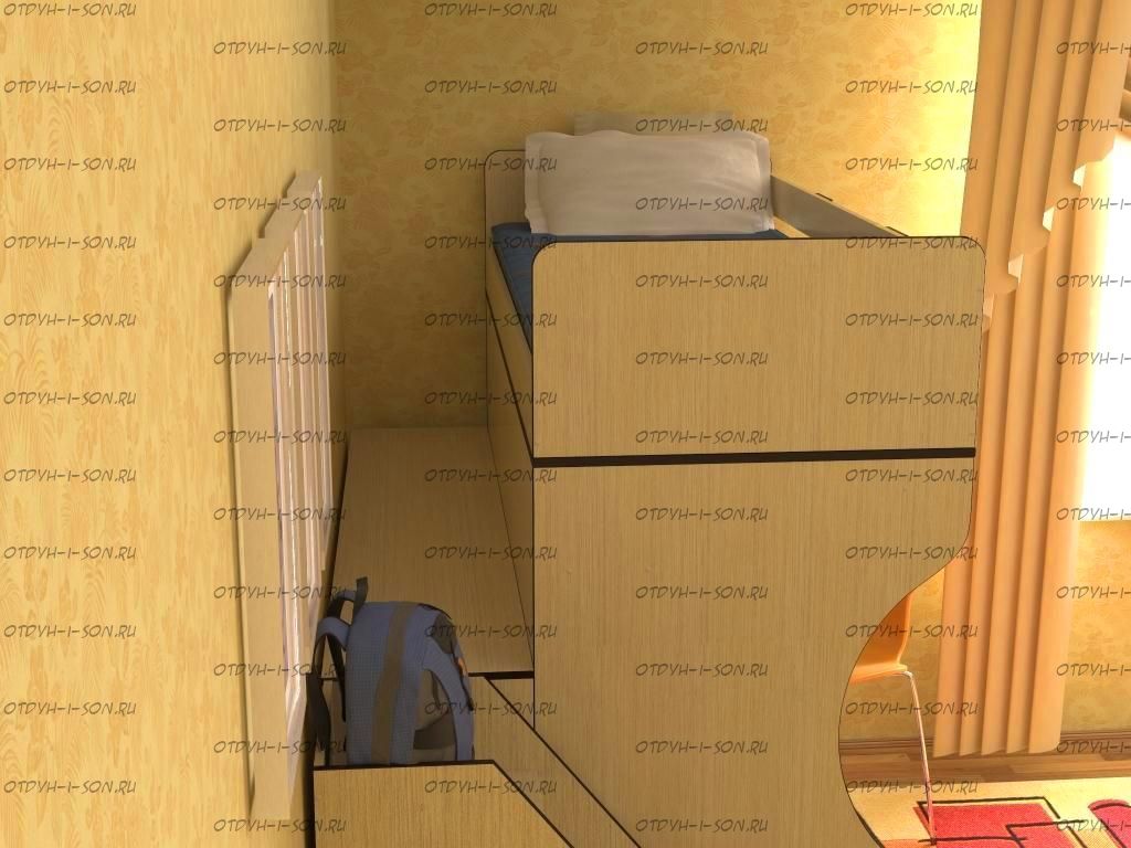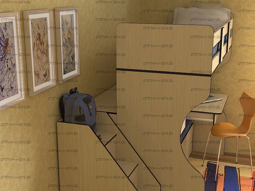 Кровать двухъярусная трансформер Дуэт-4 - это недорогая, компактная и удобная деткая кровать-чердак с игровым местом и встроенными полками.