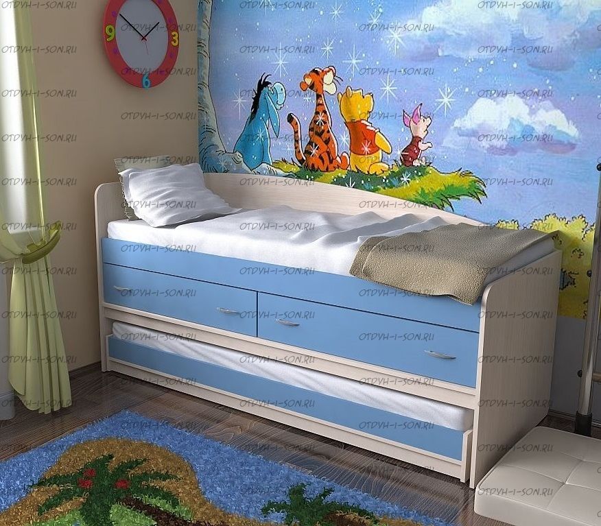 Кровать двухъярусная трансформер Дуэт-12 Характеристики: Размер верхнего спального места: 80х190 Размер нижнего спального места: 75х185 Внешние габариты (ДхШхВ): 1932х834х1004 мм Гарантия, год 2 Материал ЛДСП Высота борта: Ширина лестницы: Складская программа Вес: Объем: Цвет корпуса: яблоня, венге, орех, ольха, дуб молочный, бук. Цвет фасада: бук, яблоня, дуб молочный, венге, орех, ольха, ясень шимо светлый, ясень шимо темный, оранжевый, зозовый, синий, зеленый, ваниль. Любой цвет корпуса Вы можете скомбинировать с любым цветом фасада. К нижней кровати вы можете приобрести дополнительный съемный бортик, который убережет ребенка от падения.