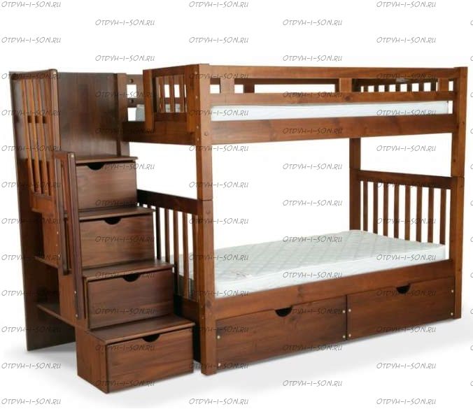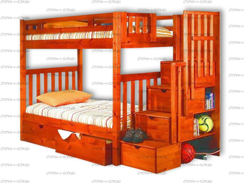 Кровать двухъярусная Артек Комплектация модели: Спинки 4 штуки, Царга 4 штуки, Борт 2 штуки, Лестница 1 штука, Подматрасники 2 комплекта, ДВП 2 штуки, яшики 2 штуки Характеристики: Размер спального места: Длина спального места: 160 см., 170 см., 180 см., 190 см., 200 см. Ширина верхнего спального места: 80 см., 90 см. Ширина нижнего спального места: 80 см., 90 см., 120 см., 140 см. Изголовье: 190/95 см. Изножье: 190/95 см. Высота спального места: 43/152 см. Расстояние между ярусами: 85-87 см. Ширина лестницы: 45 см. Спинка: массив сосны, березовая мебельная фанера 12 мм. Каркас: массив сосны Основание: поперечные брусья массив, ДВП 4-5 мм. Ящики каркас: березовая фанера 12 мм, дно ДВП 4-5 мм, выкатная система (4 колесика) - к кровати не фиксируется Ящики фасад: березовая мебельная фанера 12-16 мм, массив сосны Покрытие: Sayerlack (Италия), Renner (Италия) Внимание: возможно увеличение высоты бортиков кровати! Цвет: орех, бук, венге, груша, дуб, каштан, клен, красное дерево, махагон, ольха, сосна, белый (эмаль), слоновая кость (эмаль)