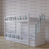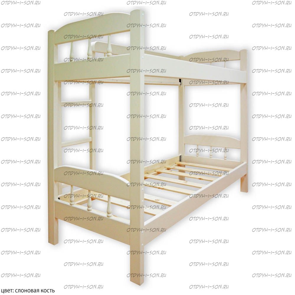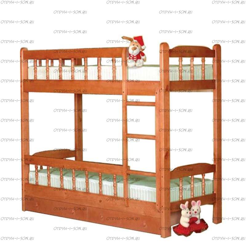 Кровать двухъярусная Алсу Комплектация модели: Спинки 2 штуки, Царга 4 штуки, Борт 2 штуки, Лестница 1 штука, Подматрасники 2 комплекта, ДВП 2 штуки, ящики 2 штуки Характеристики: Размер спального места: Длина спального места: 160 см., 170 см., 180 см., 190 см., 200 см. Ширина верхнего спального места: 70 см., 80 см., 90 см. Ширина нижнего спального места: 70 см., 80 см., 90 см. Изголовье: 170 см. Изножье: 170 см. Высота спального места: 43/148 см. Расстояние между ярусами: 83-85 см. Ширина лестницы: 45 см. Спинка: массив сосны, березовая мебельная фанера 12 мм. Каркас: массив сосны Основание: поперечные брусья массив, ДВП 4-5 мм. Ящики каркас: березовая фанера 12 мм, дно ДВП 4-5 мм, выкатная система (4 колесика) - к кровати не фиксируется Ящики фасад: березовая мебельная фанера 12-16 мм, массив сосны Покрытие: Sayerlack (Италия), Renner (Италия) Внимание: возможно увеличение высоты бортиков кровати! Цвет: орех, бук, венге, груша, дуб, каштан, клен, красное дерево, махагон, ольха, сосна, белый (эмаль), слоновая кость (эмаль)