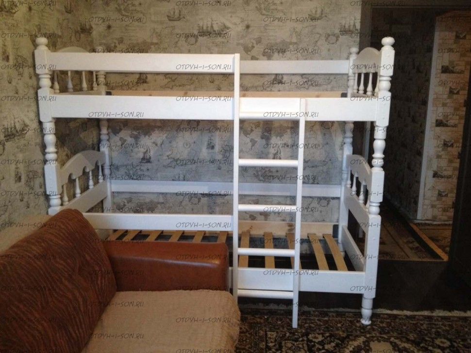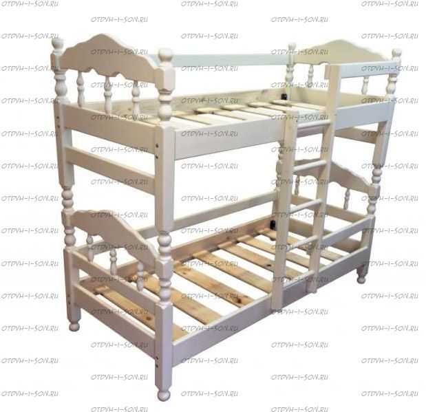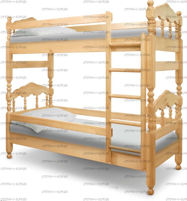 Кровать двухъярусная Комплектация модели: Спинка 4 штуки, Царга 4 штуки, Планка 4 штуки, Лестница 1 штука, Подматрасники 2 комплекта, ДВП 2 штуки Характеристики: Размер спального места: Длина спального места: 160 см., 170 см., 180 см., 190 см., 200 см. Ширина верхнего спального места: 70 см., 80 см., 90 см. Ширина нижнего спального места: 70 см., 80 см., 90 см. Изголовье: 190/95 см. Изножье: 190/95 см. Высота спального места: 45/152 см. Расстояние между ярусами: 87-89 см. Ширина лестницы: 45 см. Спинка: массив сосны, березовая мебельная фанера 12 мм. Каркас: массив сосны Основание: поперечные брусья массив, ДВП 4-5 мм. Ящики каркас: березовая фанера 12 мм, дно ДВП 4-5 мм, выкатная система (4 колесика) - к кровати не фиксируется Ящики фасад: березовая мебельная фанера 12-16 мм, массив сосны Покрытие: Sayerlack (Италия), Renner (Италия) Внимание: возможно увеличение высоты бортиков кровати! Цвет: орех, бук, венге, груша, дуб, каштан, клен, красное дерево, махагон, ольха, сосна, белый (эмаль), слоновая кость (эмаль)