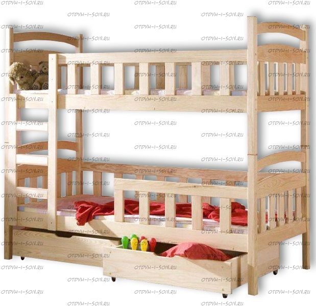 Кровать двухъярусная Классика 145945 Комплектация модели: Спинки 4 штуки, Царга 4 штуки, Борт 4 штуки, Лестница 1 штука, Подматрасники 2 комплекта, ДВП 2 штуки, ящики 2 штуки Характеристики: Размер спального места: Длина спального места: 160 см., 170 см., 180 см., 190 см., 200 см. Ширина верхнего спального места: 70 см., 80 см., 90 см. Ширина нижнего спального места: 70 см., 80 см., 90 см. Изголовье: 190/95 см. Изножье: 190/95 см. Высота спального места: 43/149 см. Расстояние между ярусами: 85 см. Ширина лестницы: 45 см. Спинка: массив сосны, березовая мебельная фанера 12 мм. Каркас: массив сосны Основание: поперечные брусья массив, ДВП 4-5 мм. Ящики каркас: березовая фанера 12 мм, дно ДВП 4-5 мм, выкатная система (4 колесика) - к кровати не фиксируется Ящики фасад: березовая мебельная фанера 12-16 мм, массив сосны Покрытие: Sayerlack (Италия), Renner (Италия) Внимание: возможно увеличение высоты бортиков кровати! Цвет: орех, бук, венге, груша, дуб, каштан, клен, красное дерево, махагон, ольха, сосна, белый (эмаль), слоновая кость (эмаль)