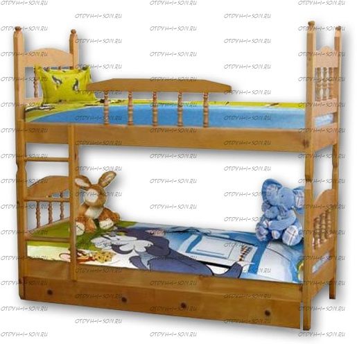 Кровать двухъярусная Комплектация модели: Спинки 4 штуки, Царга 4 штуки, Борт 1 штука, Лестница 1 штука, Подматрасники 2 комплекта, ДВП 2 штуки, ящики 2 штуки Характеристики: Размер спального места: Длина спального места: 160 см., 170 см., 180 см., 190 см., 200 см. Ширина верхнего спального места: 70 см., 80 см., 90 см. Ширина нижнего спального места: 70 см., 80 см., 90 см. Изголовье: 190/95 см. Изножье: 190/95 см. Высота спального места: 47/154 см. Расстояние между ярусами: 83-85 см. Ширина лестницы: 45 см. Спинка: массив сосны, березовая мебельная фанера 12 мм. Каркас: массив сосны Основание: поперечные брусья массив, ДВП 4-5 мм. Ящики каркас: березовая фанера 12 мм, дно ДВП 4-5 мм, выкатная система (4 колесика) - к кровати не фиксируется Ящики фасад: березовая мебельная фанера 12-16 мм, массив сосны Покрытие: Sayerlack (Италия), Renner (Италия) Внимание: возможно увеличение высоты бортиков кровати! Цвет: орех, бук, венге, груша, дуб, каштан, клен, красное дерево, махагон, ольха, сосна, белый (эмаль), слоновая кость (эмаль)