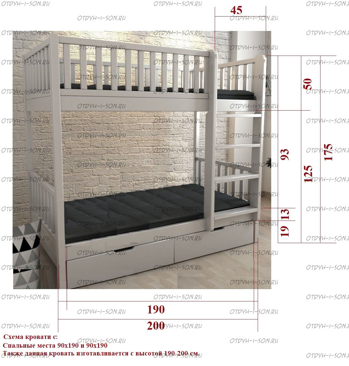 Возможно изготовление кровати нестандартных размеров по вашим замерам, доплата за нестандартный размер: