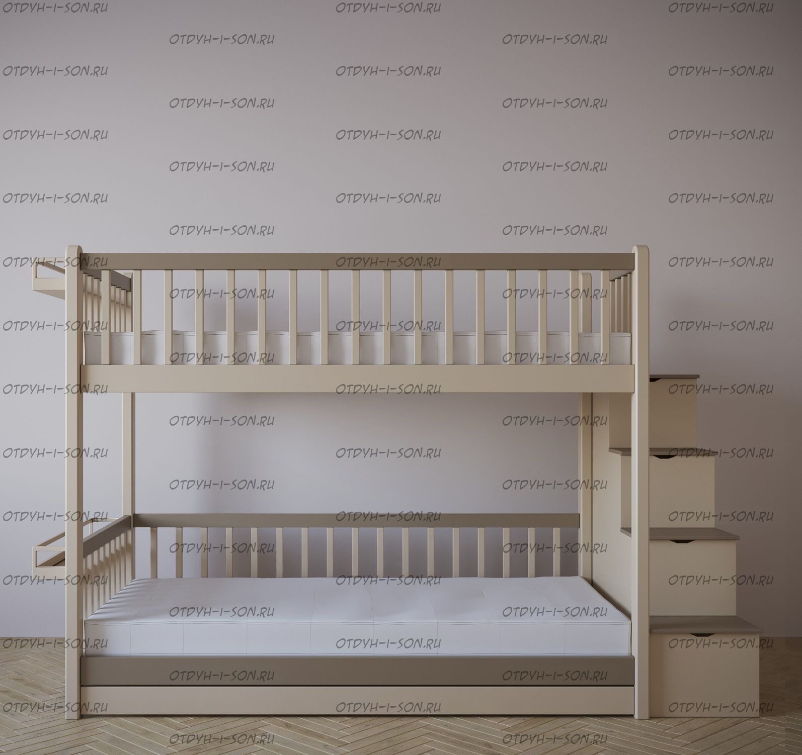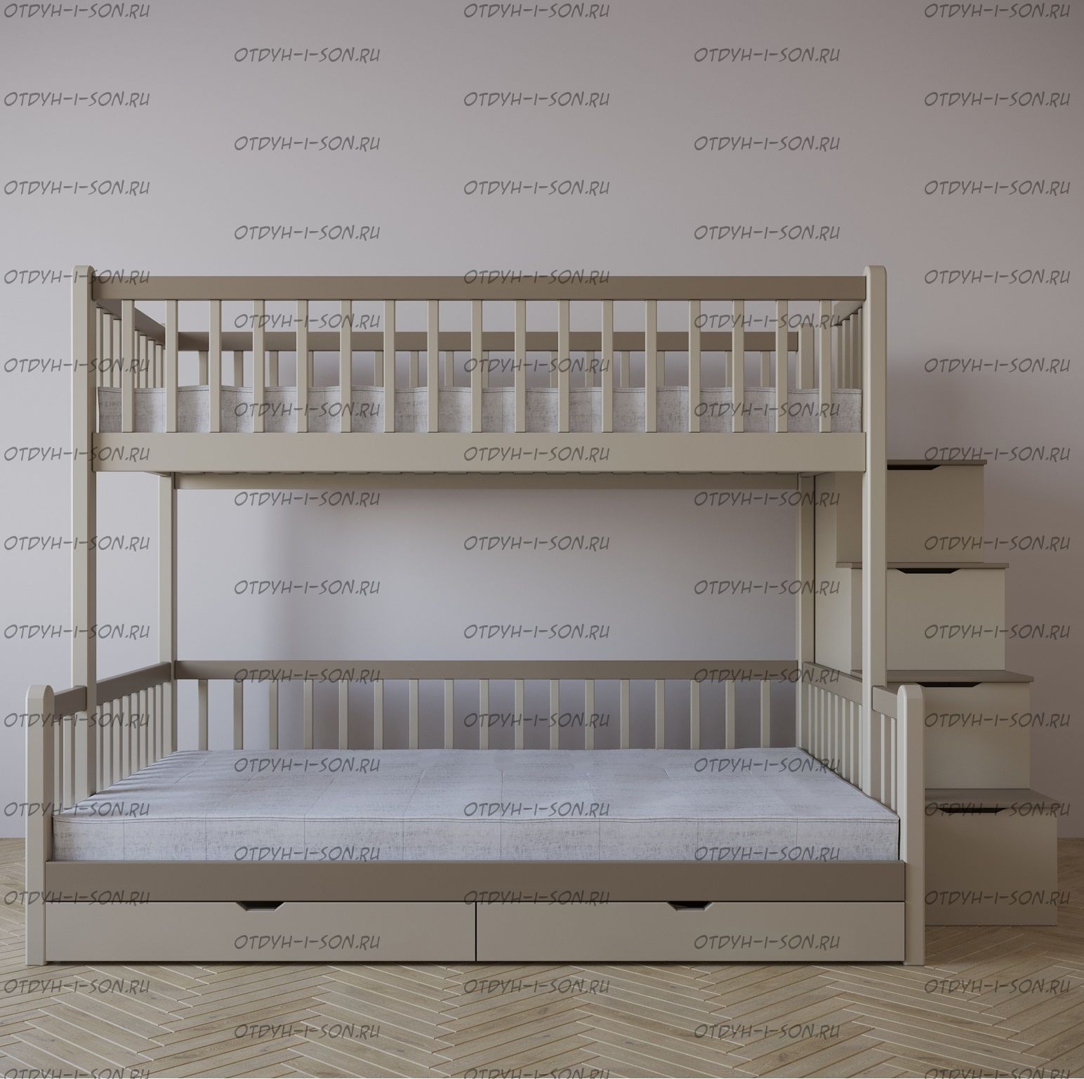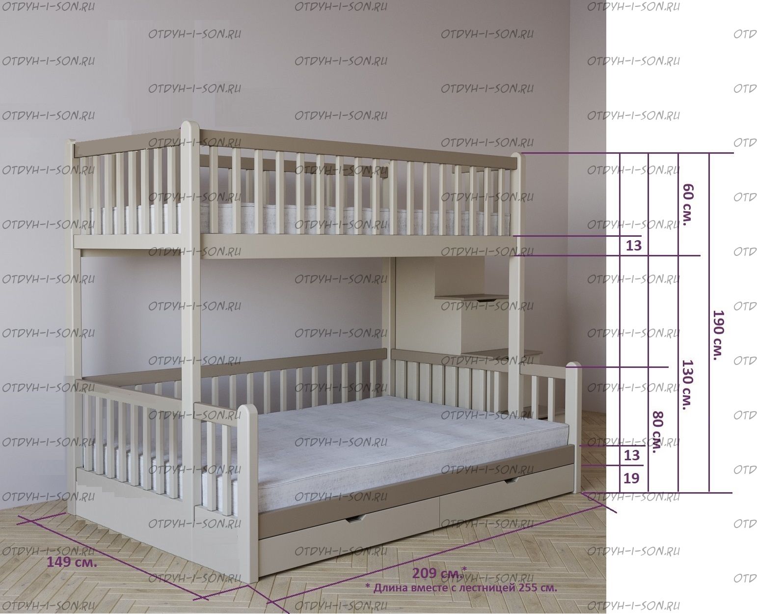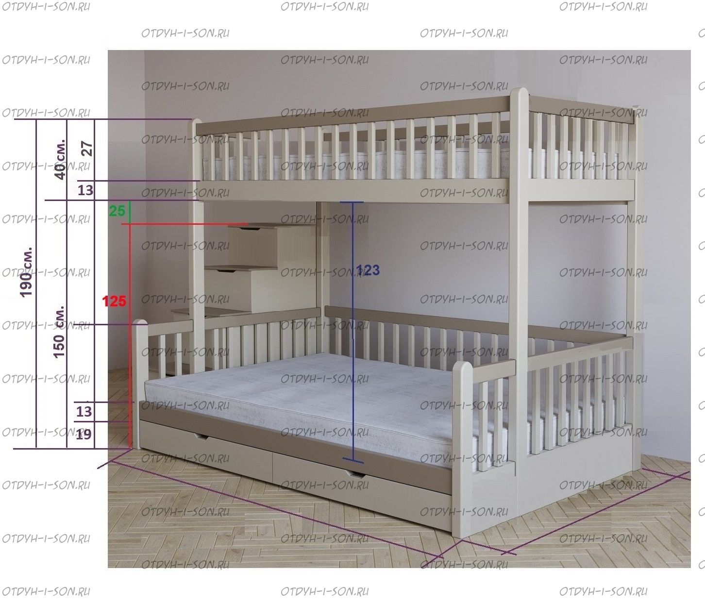 | Внимание | Расположение лестницы у данной модели: с любой стороны кровати! |