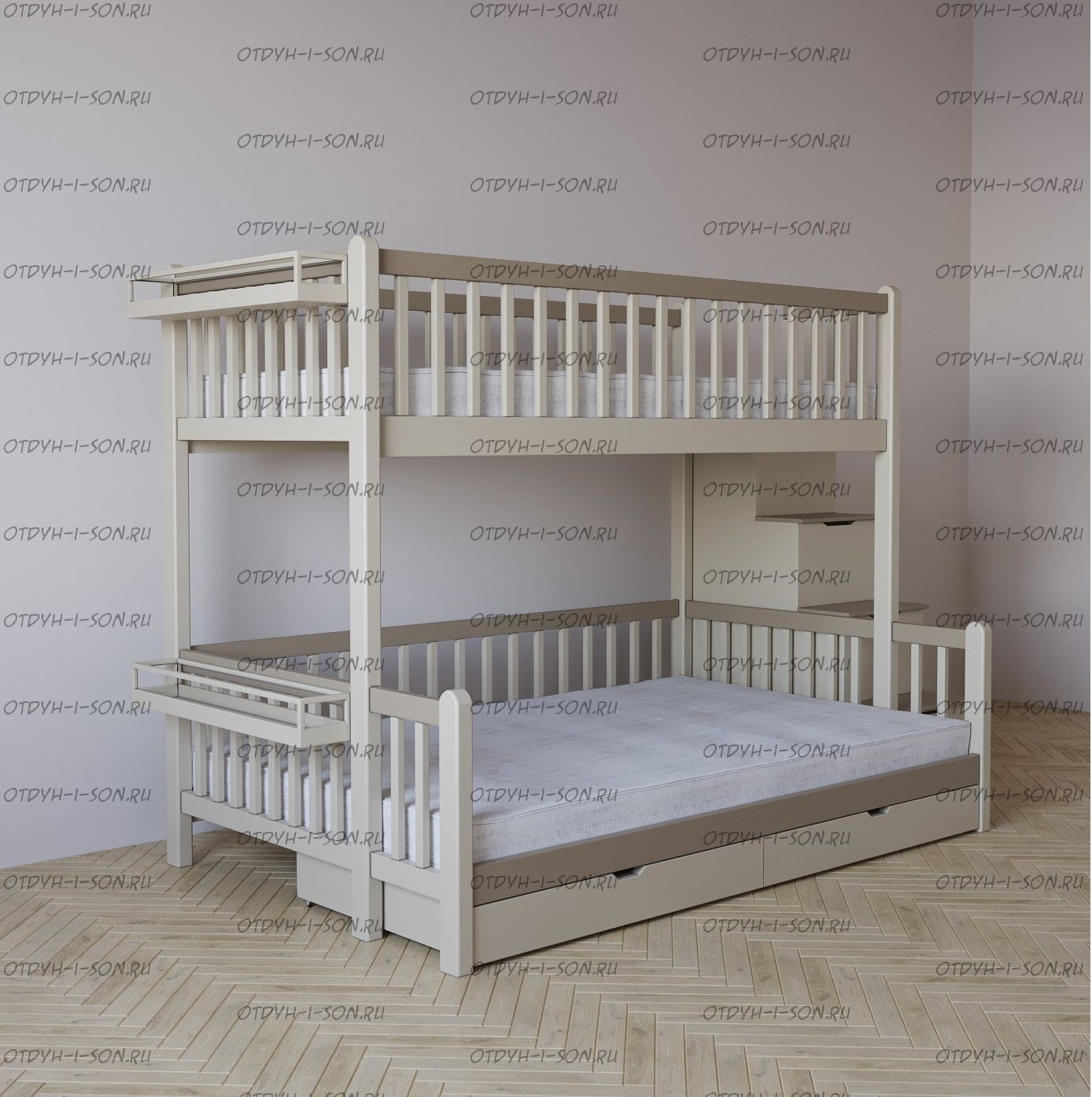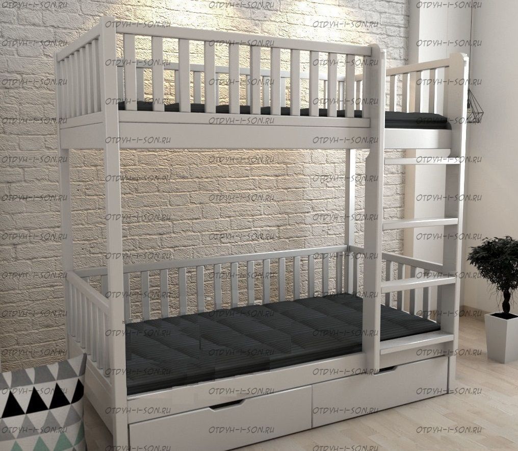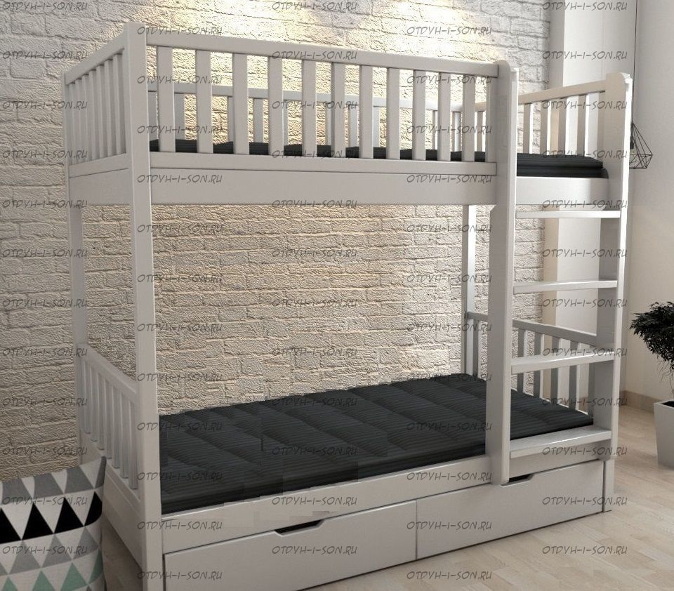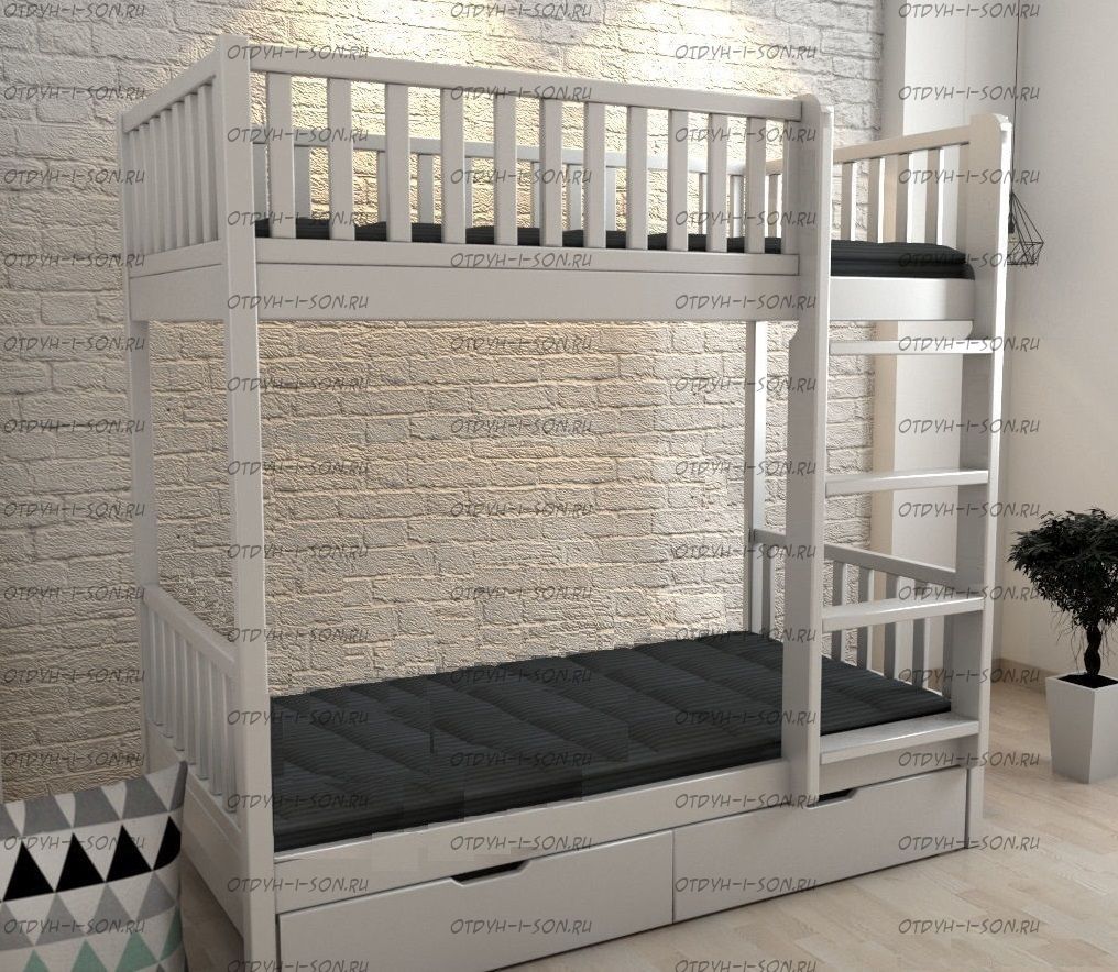 Кровать двухъярусная Лейла Классика с ящиками