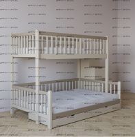 Кровать двухъярусная Лейла Классика с ящиками Комплектация модели: Спинки 4 штуки, Царга 4 штуки, Борт 4 штуки, Лестница 1 штука, Подматрасники 2 комплекта, ДВП 2 штуки, ящики 2 штуки Характеристики: Размер спального места: Длина спального места: 160 см., 170 см., 180 см., 190 см., 200 см. Ширина верхнего спального места: 70 см., 80 см., 90 см. Ширина нижнего спального места: 70 см., 80 см., 90 см. Изголовье: 190/95 см. Изножье: 190/95 см. Высота спального места: 43/125 см. Расстояние между ярусами: 85-87 см. Ширина лестницы: 50 см. Спинка: массив сосны, березовая мебельная фанера 12 мм. Каркас: массив сосны Основание: поперечные брусья массив, ДВП 4-5 мм. Ящики каркас: березовая фанера 12 мм, дно ДВП 4-5 мм, выкатная система (4 колесика) - к кровати не фиксируется Ящики фасад: березовая мебельная фанера 12-16 мм, массив сосны Покрытие: Sayerlack (Италия), Renner (Италия) Внимание: возможно увеличение высоты бортиков кровати! Цвет: орех, бук, венге, груша, дуб, каштан, клен, красное дерево, махагон, ольха, сосна, белый (эмаль), слоновая кость (эмаль)