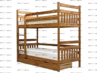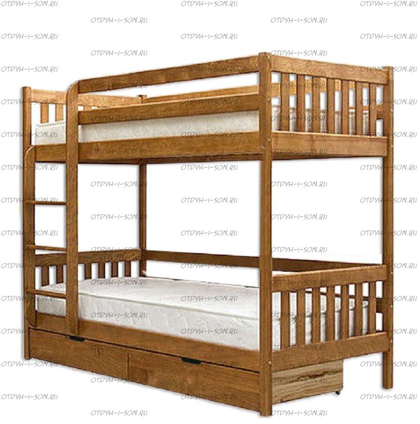 Кровать двухъярусная Классика №11+ Комплектация модели: Спинка 4 штуки, Царга 4 штуки, Планка 6 штук, Лестница 1 штука, Подматрасники 2 комплекта, ДВП 2 штуки, Ящики - 1 комплект Характеристики: Размер спального места: Длина спального места: 160 см., 170 см., 180 см., 190 см., 200 см. Ширина верхнего спального места: 70 см., 80 см., 90 см. Ширина нижнего спального места: 70 см., 80 см., 90 см. Изголовье: 190/95 см. Изножье: 190/95 см. Высота спального места: 43/149 см. Расстояние между ярусами: 85-87 см. Ширина лестницы: 50 см. Спинка: массив сосны, березовая мебельная фанера 12 мм. Каркас: массив сосны Основание: поперечные брусья массив, ДВП 4-5 мм. Ящики каркас: березовая фанера 12 мм, дно ДВП 4-5 мм, выкатная система (4 колесика) - к кровати не фиксируется Ящики фасад: березовая мебельная фанера 12-16 мм, массив сосны Покрытие: Sayerlack (Италия), Renner (Италия) Внимание: возможно увеличение высоты бортиков кровати! Цвет: орех, бук, венге, груша, дуб, каштан, клен, красное дерево, махагон, ольха, сосна, белый (эмаль), слоновая кость (эмаль)