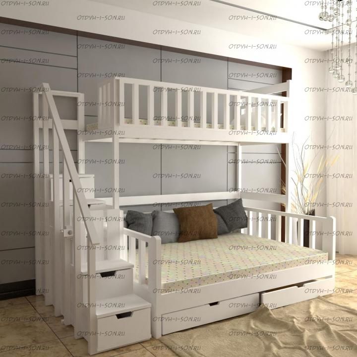 Кровать двухъярусная Factory №2 может быть изготовлена как трехъярусная кровать. Характеристики: Размер спального места верхнего яруса: 70х180, 80х180 см, 80х190 см, 90х190 см., 90х200 см. (и любые другие на Ваш вкус) Размер спального места нижнего яруса: 80х190, 80х200, 90х190, 90х200, 120х190, 120х200, 130х200, 140х190 см. (и любые другие на Ваш вкус) Внешние размеры: Материал: сосна Возможны любые нестандартные размеры Каждый ярус кровати выдерживает нагрузку до 120 кг. Вес кровати: Объем кровати: Цвет: Возможность трансформации в отдельно стоящие кровать чердак и двуспальную кровать; - без матрасов; опорный брус спинок(ножки) - 40х80мм; Внимание: для любой модели кровати возможно увеличение высоты бортиков кровати! Возможно изготовление кровати нестандартных размеров по вашим замерам, доплата за нестандартный размер: - за кровать + 10% от стоимости изделия; Производство Владимирской мебельной фабрики, кровать доставляется напрямую от производителя, самовывоз ограничен.